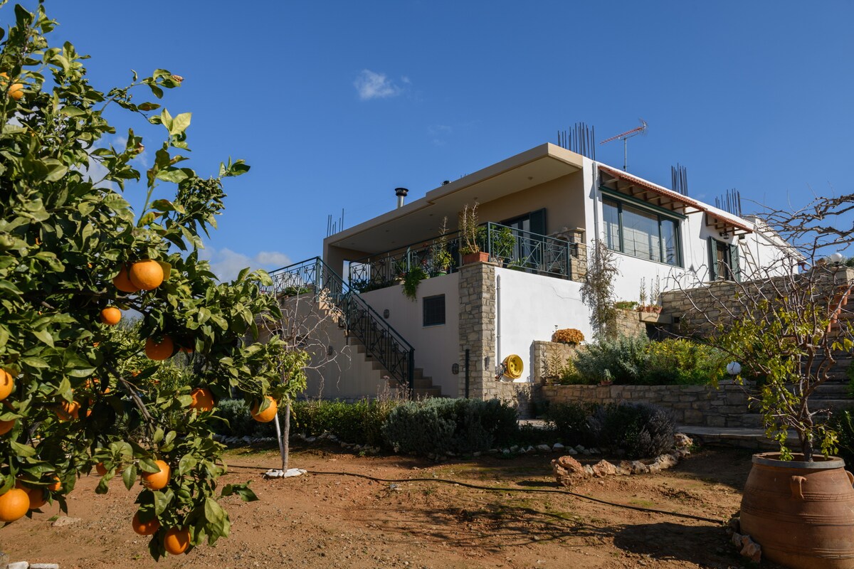 Doce casinha de pedra numa zona tranquila de Kamilari, e com uma bela vista para o mar, o Messara e para Psiloritis. A casa está rodeada por olivetrees e um jardim na frente. Tem um agradável terraço com uma pérgula, e também pode entrar no telhado onde a vista é fantástica. A casa tem um quarto separado com uma cama de casal e armários. Tem uma cozinha/área de estar aberta com um sofá que pode ser transformado numa cama. A casa de banho tem uma máquina de lavar roupa.