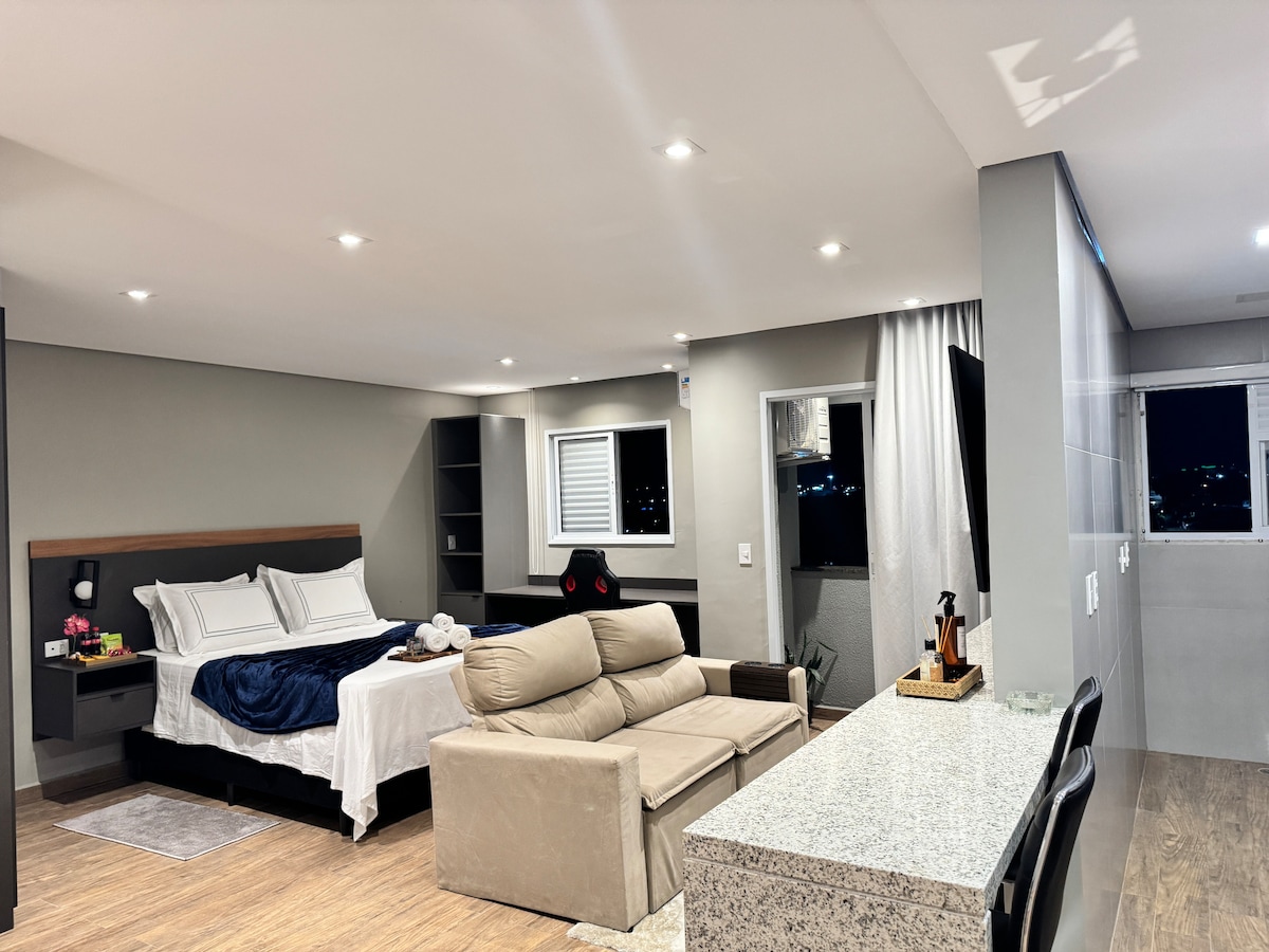 Este estúdio foi projetado para oferecer uma experiência única, unindo conforto, estilo e praticidade. A decoração moderna e cuidadosamente planejada cria um ambiente aconchegante, ideal para relaxar ou trabalhar com tranquilidade. Cada detalhe foi pensado para proporcionar bem-estar, desde a iluminação aconchegante até os móveis funcionais e elegantes. Perfeito para quem busca um espaço exclusivo, cheio de charme e personalidade Este lugar único tem um estilo próprio.