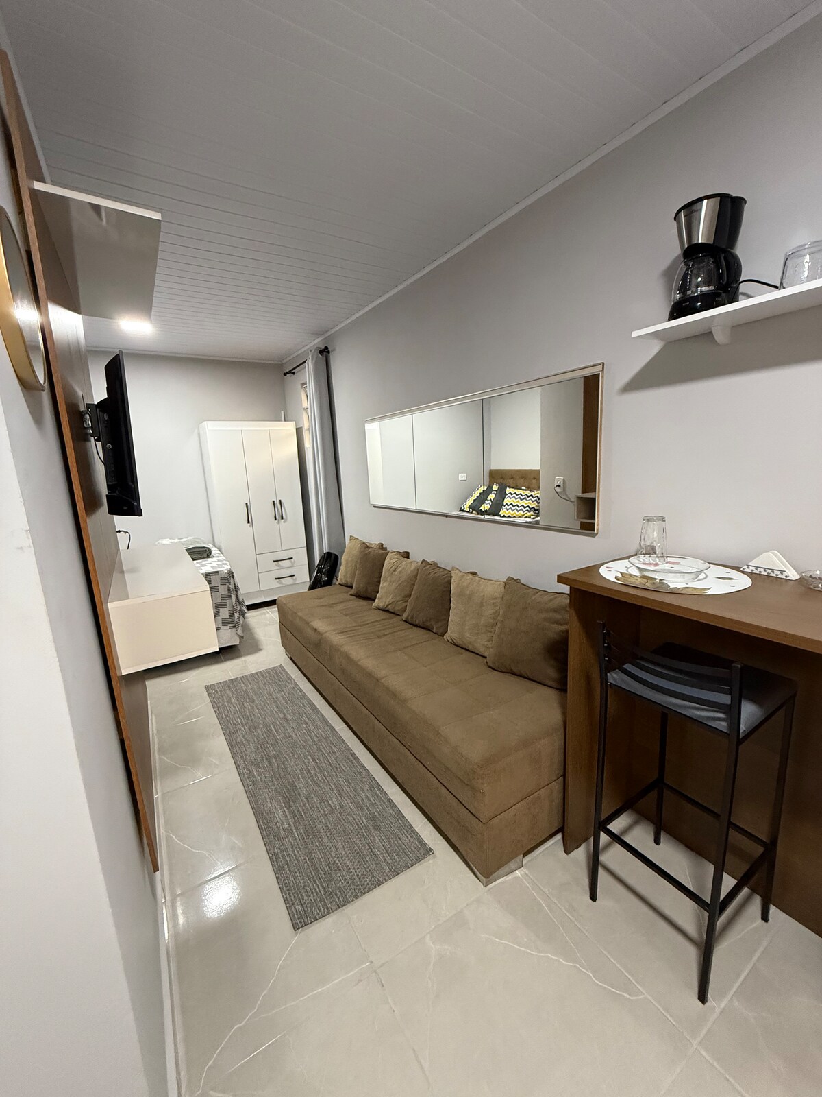 Este estúdio foi projetado para oferecer uma experiência única, unindo conforto, estilo e praticidade. A decoração moderna e cuidadosamente planejada cria um ambiente aconchegante, ideal para relaxar ou trabalhar com tranquilidade. Cada detalhe foi pensado para proporcionar bem-estar, desde a iluminação aconchegante até os móveis funcionais e elegantes. Perfeito para quem busca um espaço exclusivo, cheio de charme e personalidade. Colchão americano Stearns and Fosters dos melhores hotéis de NY.