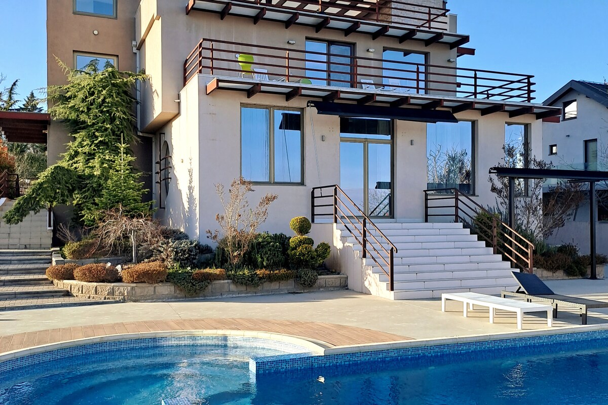 Villa Bavcha – Private poolhouse in Skopje Your private space for unforgettable moments! Villa Bavcha offers the ideal setting – combining comfort and privacy, just 10 minutes from the city center. What You’ll Love: Spacious en-suite bedroom, fully equipped kitchen, comfortable open-plan living area, swimming pool-10m x 6m with ambient lights lush, garden with fruit trees, grass lawn, terrace (30m²), sun loungers, swing chairs, umbrellas, solar-powered outdoor shower, private parking and sauna.