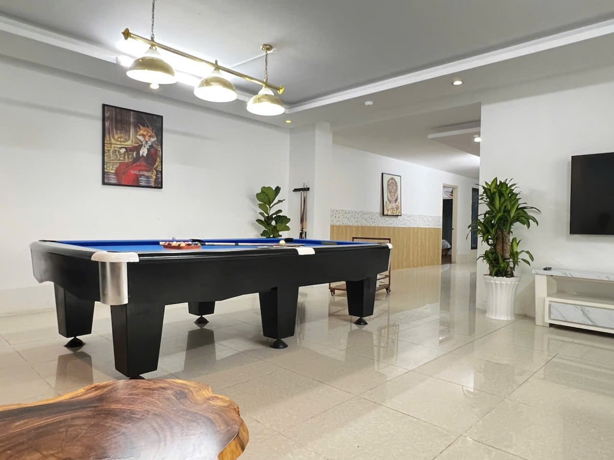 A moradia tem quase 2000 m2 com elevador exterior - Piscina eletrolítica de sal de 100 m2, mesma área de jardim ideal - Sala de festas separada com mesa de bilhar e karaoke moderno, dando-lhe uma paixão por cantar sem ter de limitar o som. - Cozinha completa: fogão de indução, forno, frigorífico. - Localização conveniente: perto do mercado de peixe fresco, restaurantes famosos e atrações turísticas interessantes. - Capacidade flexível: a Villa inclui 8 quartos, 9 camas king size, 10 WC e colchão extra, padrão 18 hóspedes.