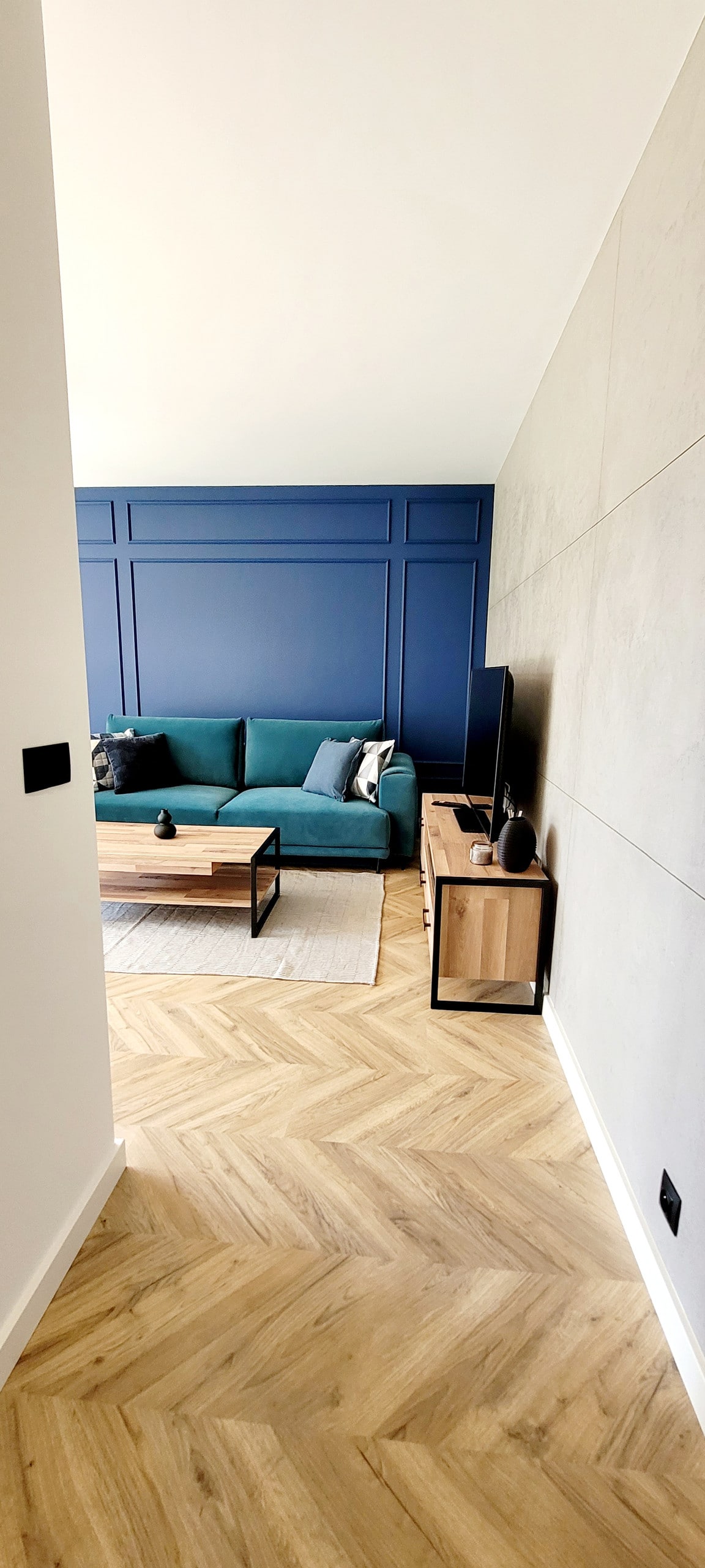 O apartamento está localizado em um bloco recém-construído (2023) com elevador, no segundo andar, com seu próprio espaço de estacionamento em frente ao edifício. Possui dois quartos decorados em estilo moderno semelhante, com camas continentais confortáveis. O primeiro quarto tem uma cama de casal grande e o segundo tem duas camas de solteiro, que podem ser unidas para formar uma cama de casal. A sala de estar tem um sofá-cama confortável e uma saída para uma grande varanda ao lado. A cozinha é totalmente equipada. Há um parque infantil ao lado do bloco.