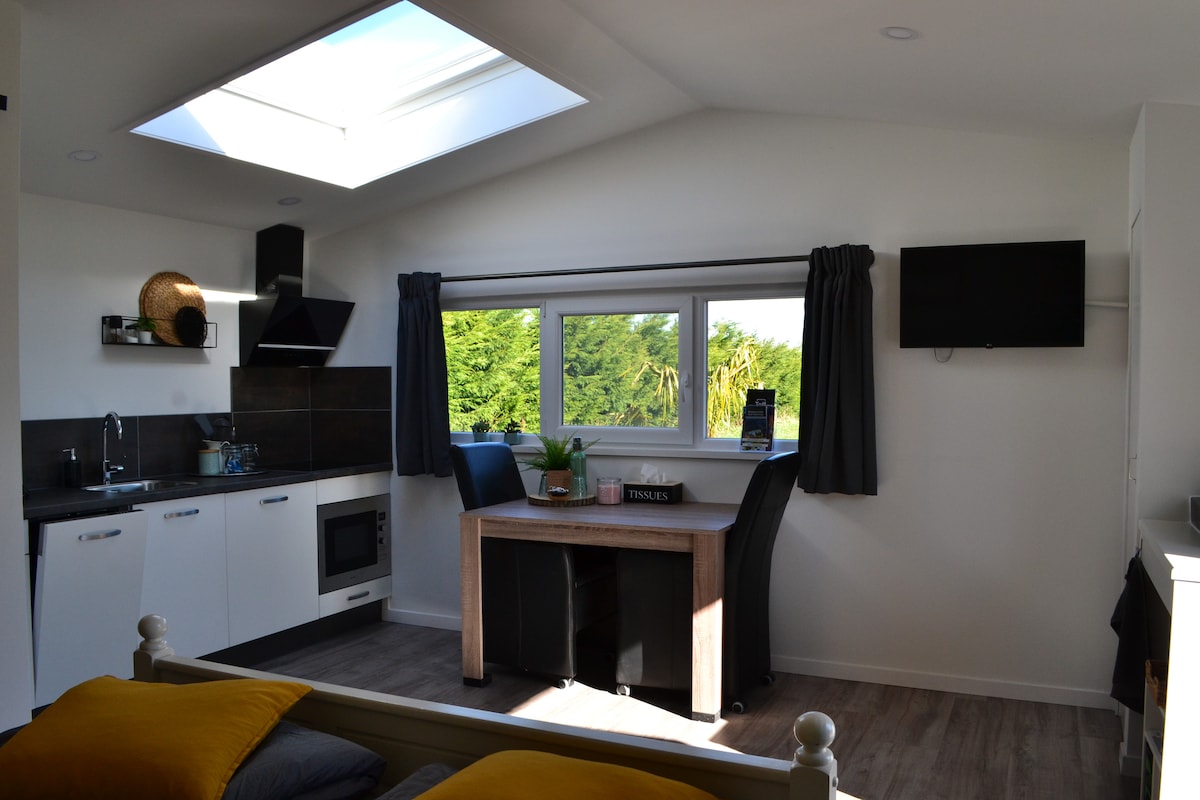 Em nosso grande jardim, há uma linda casa de campo só para você. Do jardim, você pode ver o farol. Animais de estimação não são permitidos. 2 camas boxspring deliciosas, chuveiro privativo, banheiro, TV, Wi-Fi, geladeira, café/chá e micro-ondas. Estacione o seu carro gratuitamente durante a sua estadia ou carregue a sua bicicleta na sua casa (traga o seu próprio carregador) Desfrute de uma caminhada na praia até Vlissingen, das belas ciclovias ou de um dia na histórica Middelburg!