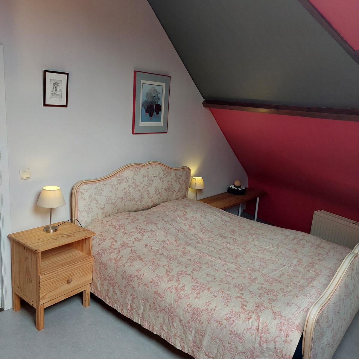 Apartamento de 1 quarto numa rua tranquila no sótão de um castelo onde vivemos. 5 minutos a pé de transportes que oferecem acesso direto ao centro da cidade (35-40 minutos). Casa de banho e chuveiro separados. Inclui uma cama de casal para 2 pessoas e um sofá-cama para acomodar até 4 pessoas. Se quiser abrir o sofá, coloque 3 pessoas na reserva ⚠️fica no 3º andar e não há elevador. Estacionamento gratuito a 5 minutos a pé da casa.⚠️ não são permitidos visitantes à noite