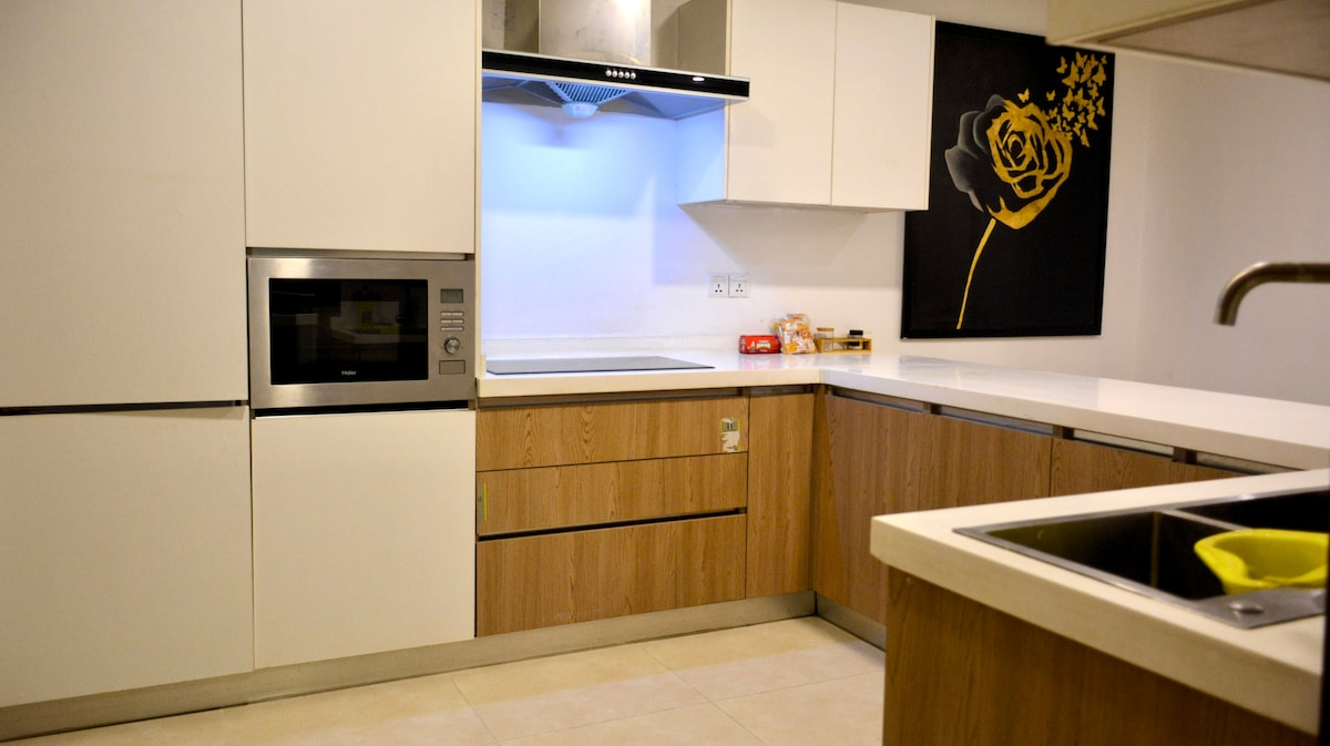 A nossa penthouse 1 BHK Orbit na DHA Fase 5 é onde o chique urbano encontra o frescor celestial. Pense: uma parede de lua brilhante para aquelas selfies noturnas e uma peça de arte ousada com dólares que grita "energia de personagem principal" Acorde com vista para o parque a partir do seu baloiço na varanda privada, veja os seus programas favoritos na Smart TV 4K de 50 polegadas ou cozinhe algo estético na cozinha de designer totalmente equipada. Os interiores? Abstratos, elegantes e feitos para o feed. Além disso, está mesmo ao lado dos restaurantes mais populares de Lahore.