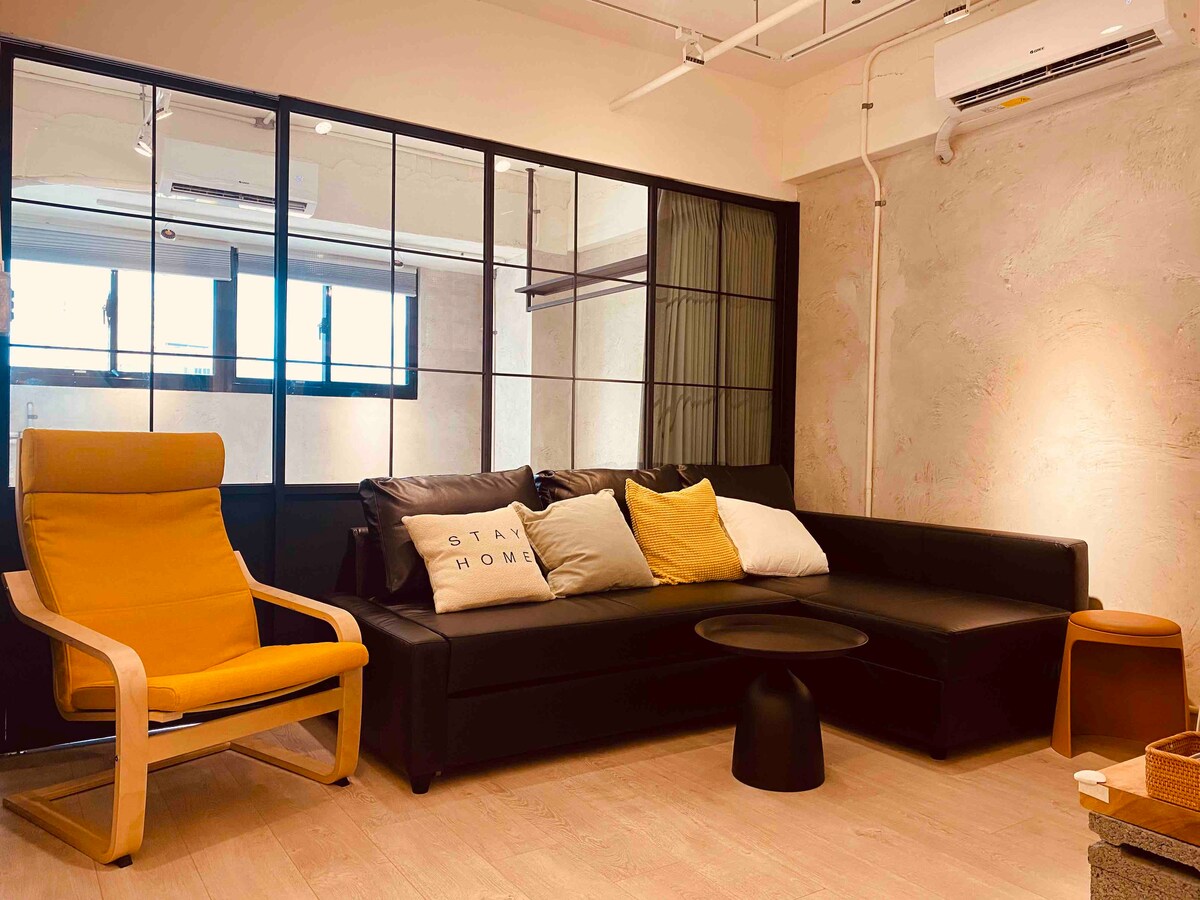 FangHouse Loft Ximending 2~5 pessoas, dois quartos e duas casas de banho. 7 minutos da estação de metro Ximen. Carrefour. Edifício vermelho