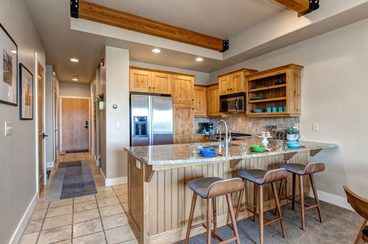 Enjoy the smell of pine trees, fresh air, and the sound of the provo river rushing only a few feet from the large front balcony. Our intimate 2 bedroom, 1 bath cabin is perfectly sized for a couples retreat or family vacation to the Conde Nast award-winning resort. Bedroom 1 includes a king size bed and bedroom 2 a queen size bed. The living area is comfortable and spacious. The kitchen features quality appliances and granite countertops. Cooking ware, dishes, and utensils provided.