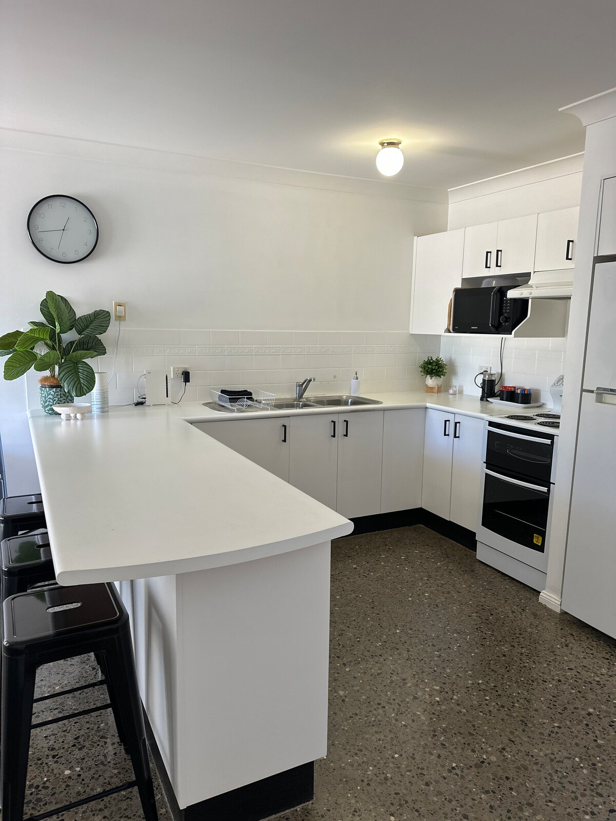 O nosso espaço é uma pequena sala de estar com ar condicionado, um pouco como um quarto de motel com cama de casal, utensílios de cozinha, micro-ondas, fritadeira, fogão de uma boca, um pequeno lava-loiça e casa de banho. Há portas francesas entre o quarto e a kitchenette/casa de banho combinada. Chá e café fornecidos (não pequeno-almoço). Estacionamento numa rua muito tranquila. Não há estacionamento no local. A varanda de acesso é partilhada por uma ocupação adjacente.