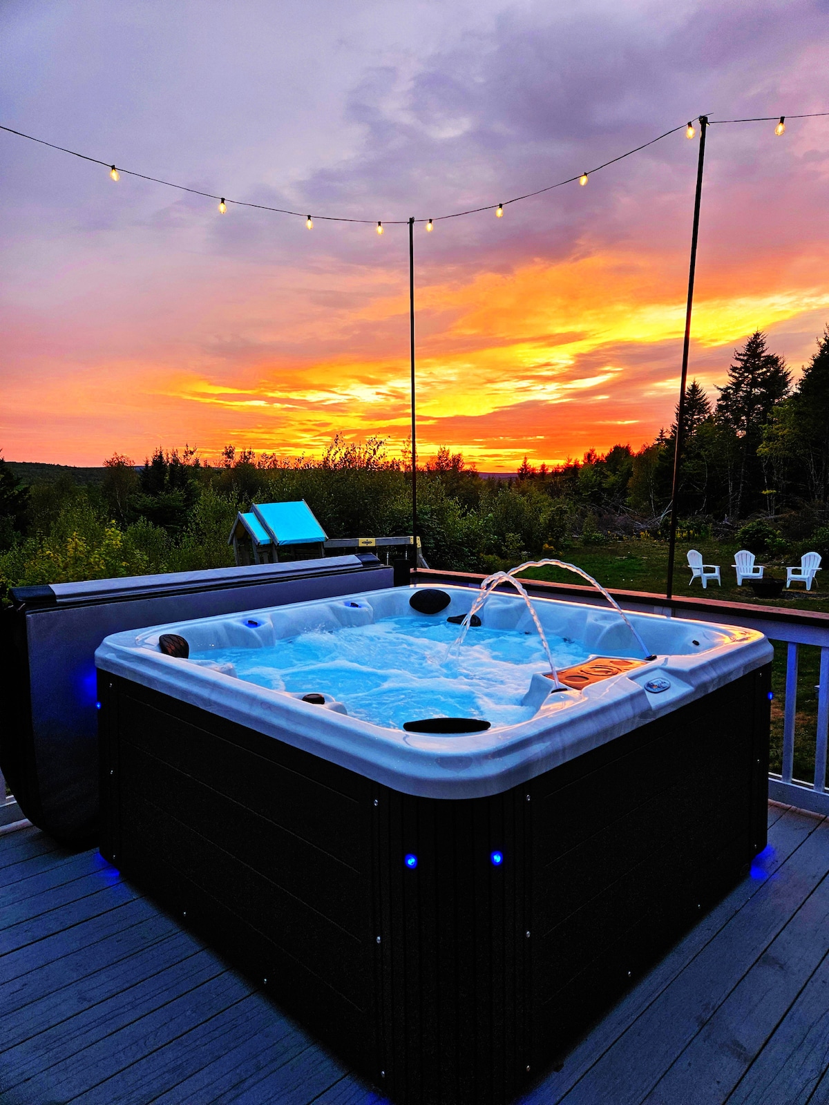 Bring the whole family to this great place with lots of room for fun. With our chalet style house you will have plenty of space for entertaining. We are located on a dead end road perfect for walks with the family with breathtaking views of the sunset all summer. The hot tub located on the front porch is perfect for stargazing at night! The house is located 23 miles from Ellsworth, 10 miles from Winter Harbor which is home to the ferry terminal that will take you to Bar Harbor for the day!