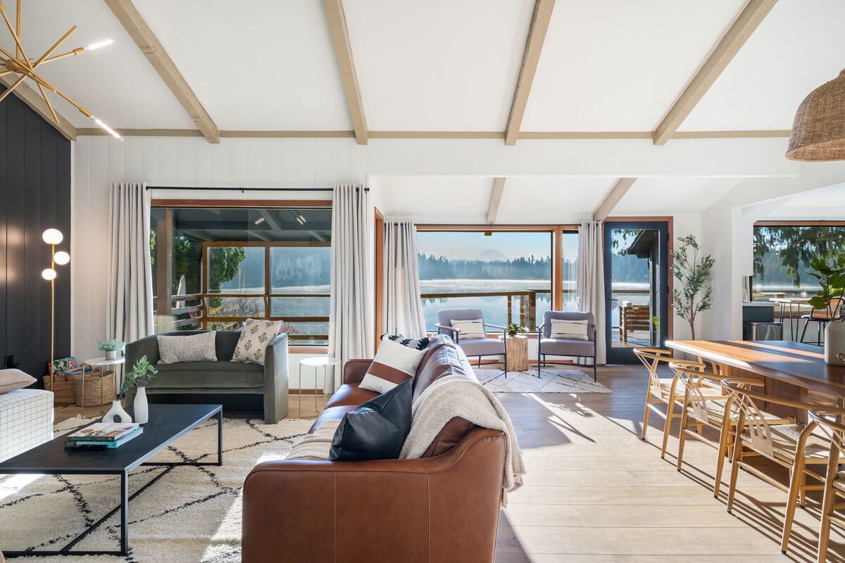 Procura um tempo relaxante, de férias zen ou de qualidade em família? Irá desfrutar de manhãs tranquilas junto ao lago cintilante, pôr do sol de tirar o fôlego sobre o Monte. Rainier, aventuras de caiaque e noites aconchegantes sob as estrelas junto à fogueira. Relaxe na banheira de hidromassagem, grelhe no terraço e relaxe no nosso espaçoso retiro de 4 quartos e 2,5 casas de banho com ar condicionado, jacuzzi, sala de jogos, caiaques, churrasqueira e comodidades para famílias. O Lakefront Nest é a sua escapadela perfeita, a apenas 30 minutos de carro de Seattle/Bellevue!