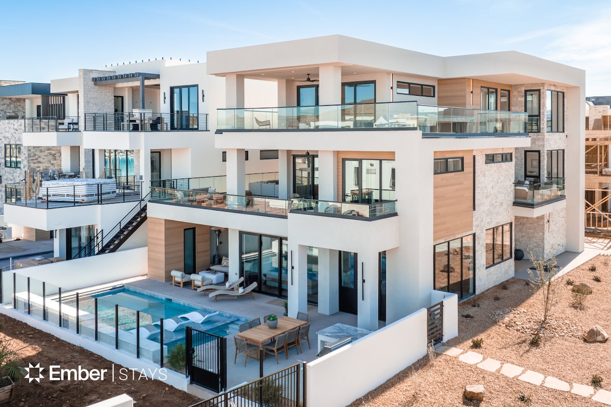 Desert Sapphire é uma casa Desert Color em frente à lagoa com vista para a icónica lagoa de dois hectares e meio em St George. Concebido para grupos grandes, este retiro mobilado profissionalmente acomoda até vinte e quatro hóspedes e dispõe de uma piscina aquecida privada e banheira de hidromassagem, espaços amplos para refeições e reuniões e quartos com casa de banho privativa. Com um design arrojado inspirado na paisagem do deserto e uma das maiores piscinas privadas da comunidade, a Desert Sapphire oferece uma estadia de grupo requintada no sul do Utah.