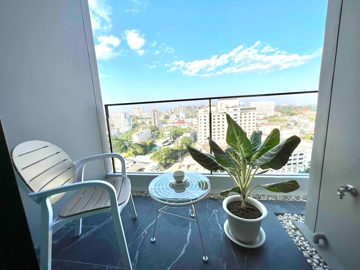 O nosso objetivo é oferecer-lhe um espaço acolhedor com todos os confortos de casa que pode esperar de um hotel de 5 estrelas. O nosso belo apartamento de 1 quarto está situado ao lado do hotel Shangri-La de 5 estrelas. Pode ficar num apartamento de um quarto de 52 metros quadrados por uma fração do que pagaria por um quarto semelhante no Shangri-La e o nosso espaço na piscina fica no telhado com vista para a cidade!!