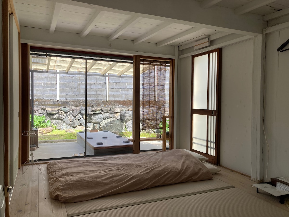 Reserva a partir de 2 pessoas/mínimo de 2 noites. Aceitamos apenas um grupo de cada vez, pelo que terá uso exclusivo de toda a propriedade. A pousada é uma típica casa japonesa antiga, não como um hotel resort ou Ryokan para negócios. Não temos serviço de refeições. A aldeia de Mikiura está rodeada pelo mar azul claro e pelas montanhas verdes naturais. Irá desfrutar do verdadeiro Japão, como a experiência de vida rural, o tempo de silêncio e a bela natureza.