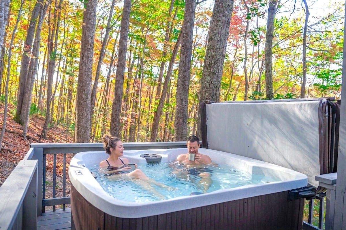 Mantenha-se fresco na sua Suite Cottage com ar condicionado no primeiro andar com vistas deslumbrantes para TN e NC! As comodidades incluem 2 quartos, 1 casa de banho, lareira, sala de jantar, 3 entradas privadas e um pátio com grelhador, fogueira e banheira de hidromassagem para 3 pessoas. Desfrute também de uma banheira de hidromassagem de 7 pés no hangar! Caminhe pela linha TN/NC ou explore o desfiladeiro para nadar, escalar e aventurar-se. Uma escapadela tranquila na montanha espera por si!