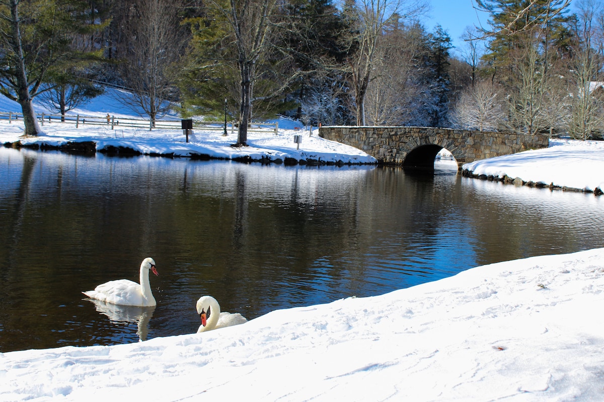 Sim, estamos abertos após o furacão. O loft é separado da nossa casa, privacidade garantida. Desfrute de nossas galinhas amigáveis, caminhe em nossos jardins. Colha ervas frescas. A 12 minutos de Boone. A 15 minutos da ASU. Aconchegante, moderno. Internet rápida. Espaço livre para animais de estimação. Apenas adultos + (bebês com menos de 7 meses. Cozinha abastecida. Se você cozinhar, pedimos que você limpe também e deixe a cozinha como você a encontrou. Vistas da montanha Snake, famosa por asa delta. Pesca de truta e 3 pistas de esqui nas proximidades. Tudo a 30 minutos do loft.