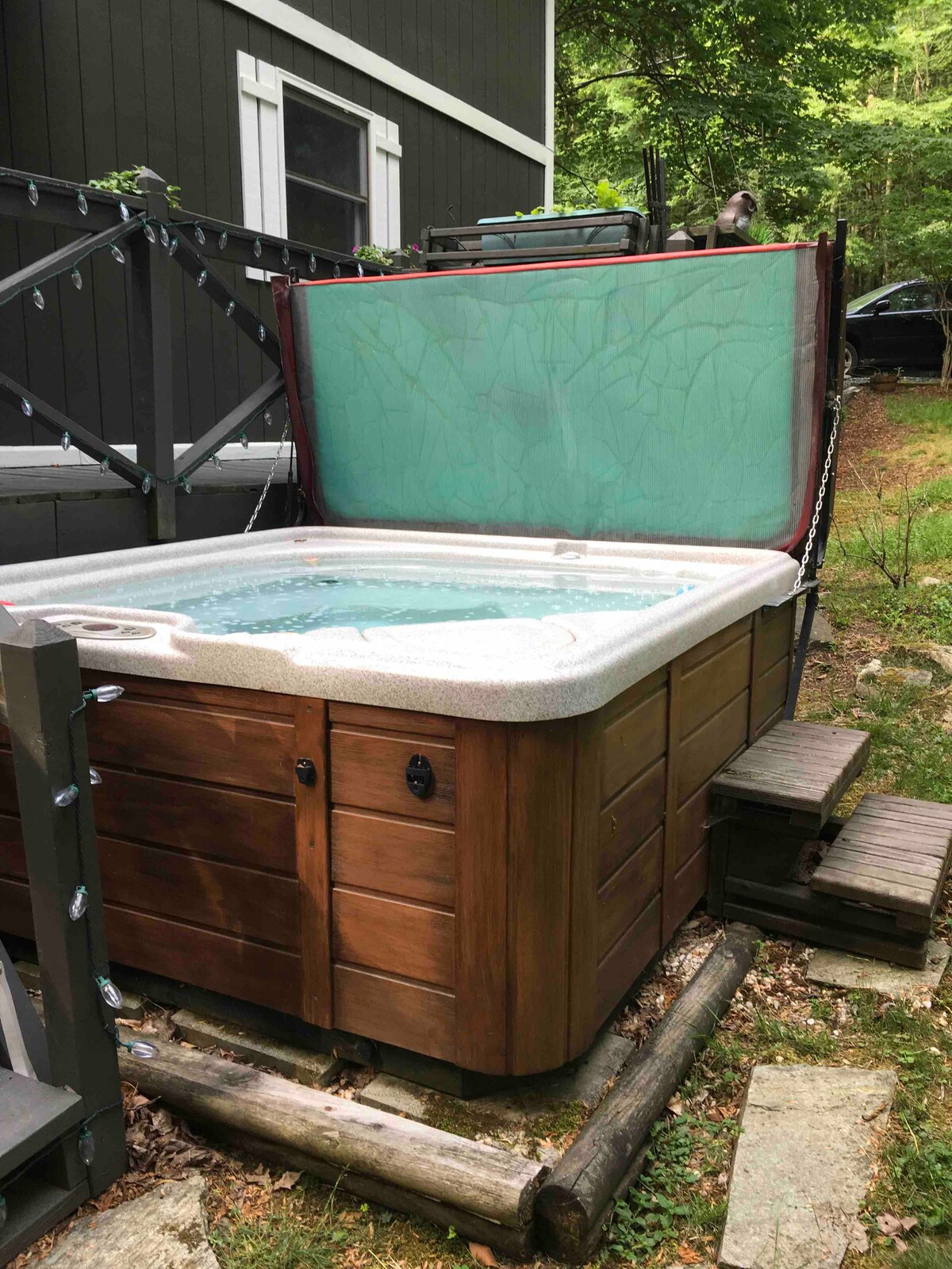 Encontre-se totalmente imerso em ambiente serino da natureza com um lago de natação alimentado por duas nascentes de água doce. Delicie-se com uma sauna a lenha ou com a NOVA fonte alimentada, sem produtos químicos, banheira de hidromassagem a lenha aninhada em privado na floresta. (Para manter as tarifas super baixas, as taxas de utilização de lenha e comodidades para banheira de hidromassagem, sauna ou EV não estão incluídas na sua tarifa por noite, por favor pergunte) Para perguntas, por favor pergunte. Há centenas de quilómetros de trilhos para caminhadas! O circuito de Hebron Falls fica a uma curta caminhada do início do trilho!