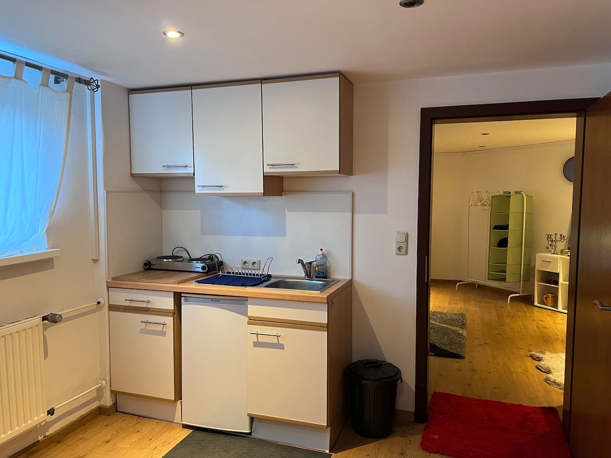 Die kleinen gemütlichen 25 qm befinden sich in einem kernsanierten Altbau aus dem Jahre 1900. Wir bieten neben dem historischen Charme eine eigene Dusche, WC und eine Pantry Küche (Kühlschrank, Mikrowelle), TV und WLAN Zugang inklusive. Die Wohnung mit eigenem Eingang bietet Platz für bis zu 2 Personen im Parterre. Sie wohnen neben der sehenswerten Burg Rode von der man einen wunderschönen Blick in die Umgebung genießen kann. Der Bahnhof liegt nur 5 Gehminuten weit entfernt. ID:005-2-0011040-22