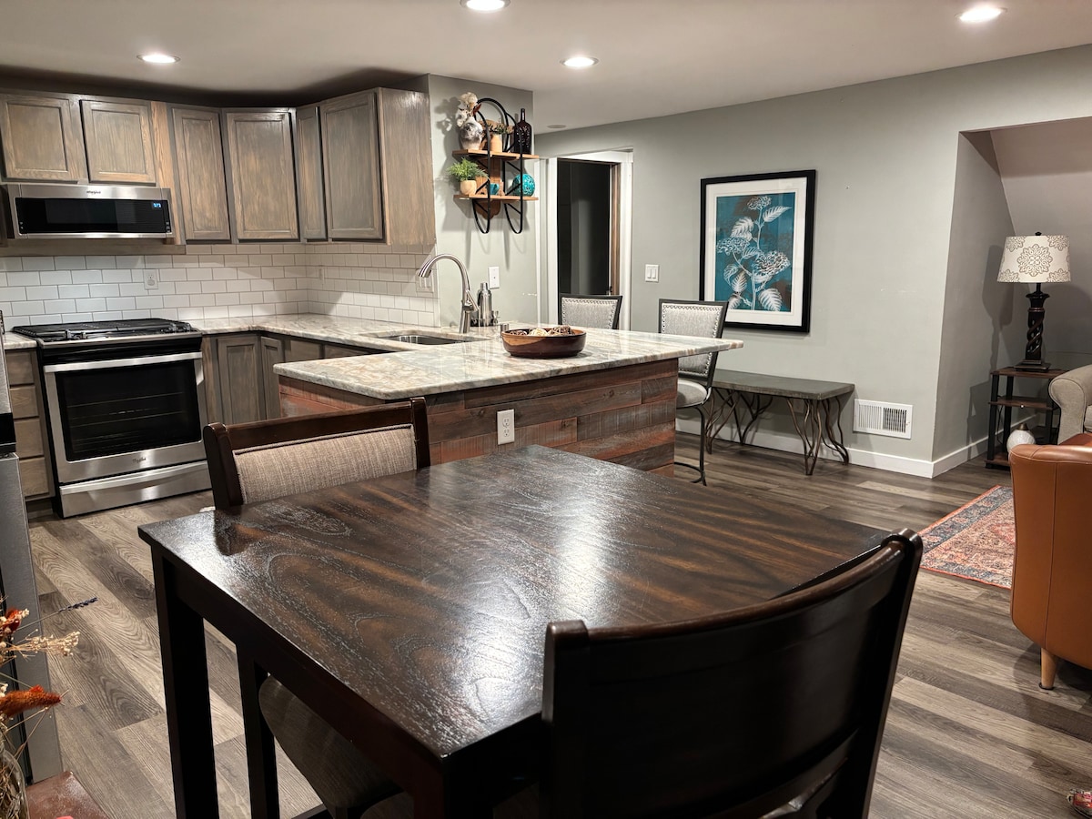 Acorde com o nascer do sol sobre um quintal tranquilo e desfrute da sua mistura favorita na sua varanda privada. As noites são perfeitas junto à lareira sob um céu estrelado. Esta casa renovada tem fogão/forno a gás, micro-ondas, máquina de café, frigorífico/congelador de tamanho completo, máquina de lavar e secar roupa, televisão inteligente e acesso Wi-Fi - ideal para casais, famílias pequenas ou profissionais em viagem. A apenas 1,6 km da I-94 e a 20 minutos de Milwaukee, combinando conforto tranquilo com a conveniência da cidade.