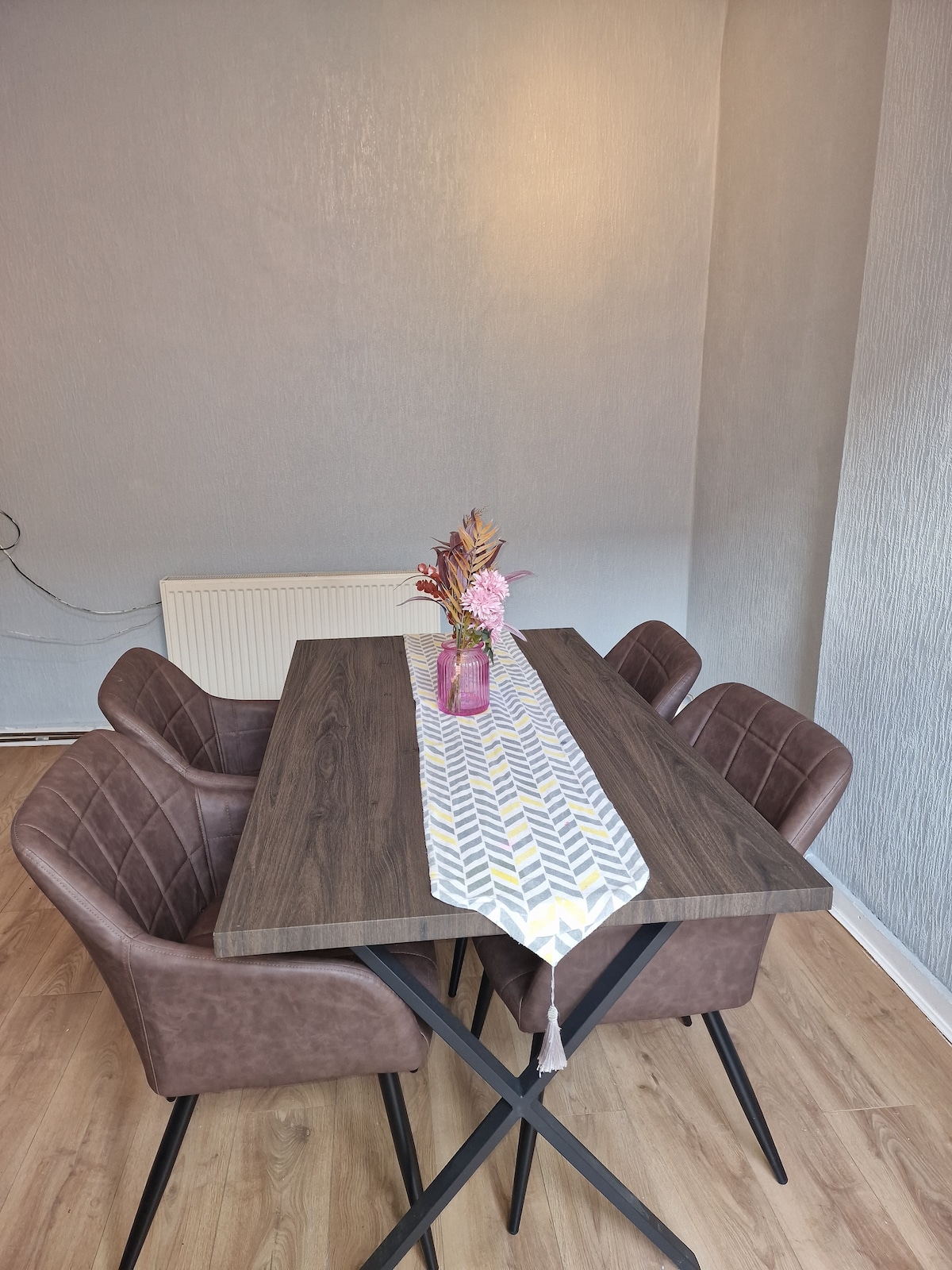 This one bedroom flat is bright, spacious and beautifully furnished. The flat sleeps three, with reasonably sized kitchen which leads to a balcony. The living room area is furnished with a corner sofa, smart tv and a table. Clean towels are provided daily and free Wi-Fi available. Nice & Cosy Salford is above Caribbean Nice & Tasty takeaway shop not far from Salford Quays, Old Trafford Stadium, Lowry Theatre, Media City and Regent Road Retail Park.