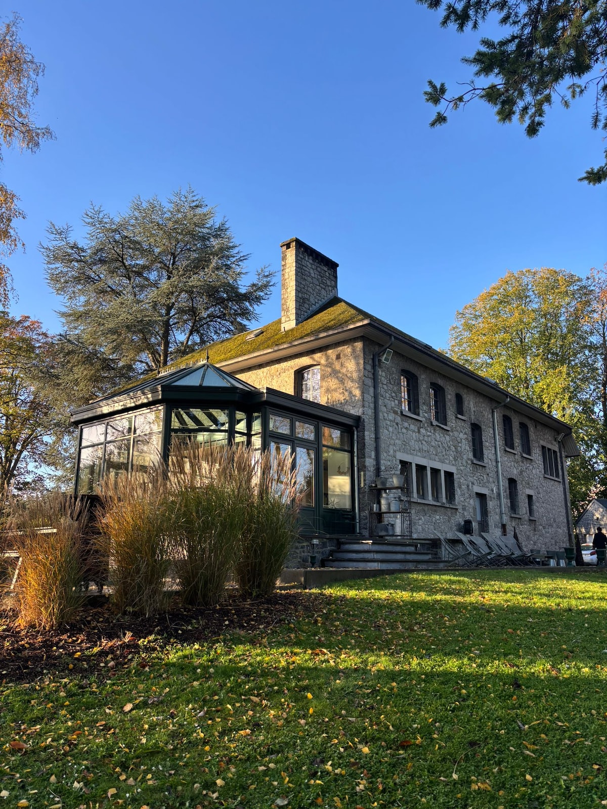 Nossa casa é um teatro convertido em acomodação. Ela é construída com materiais ecológicos e grandes janelas que deixam o sol entrar o dia todo. Ela está localizada no campo com uma vista deslumbrante das Ardenas belgas. Luxo, paz e prazer reinam supremos. Muitas atividades na natureza: escalada, descida de caiaque, caminhadas na floresta, natação no rio, visita a castelos e parques. Ou não fazer nada e apenas aproveitar a vista no jardim...
