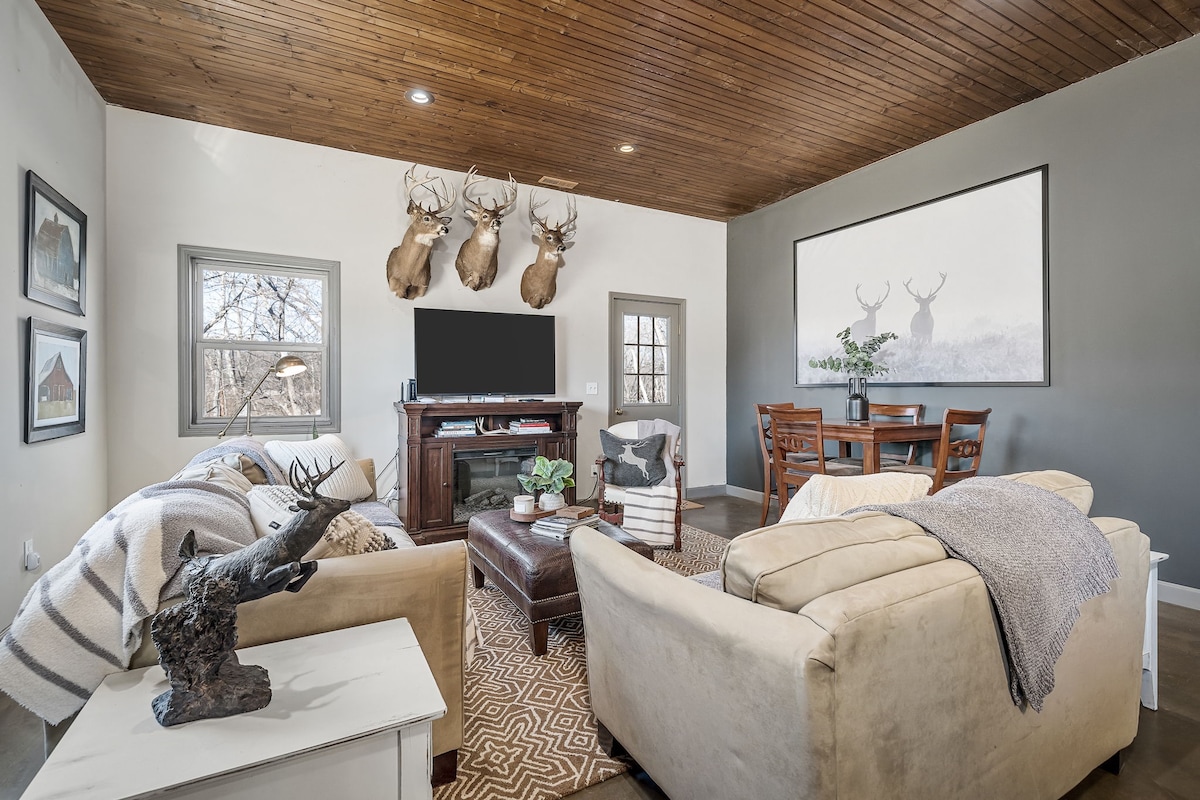 Reconecte-se à natureza nesta pequena casa em uma instalação de cavalos de trabalho. Desfrute de sentar-se no pátio, acender uma fogueira na lareira ou observar veados e perus passeando. Se você está tão inclinado a interagir com cavalos, oferecemos aulas de equitação e de solo para iniciantes a avançados - Maplewood Farm está no mercado há quase 30 anos! Localizado a apenas 5 milhas de Fulton, MO e a apenas 20 milhas de Columbia, MO e fácil acesso à I70 e à Hwy 54