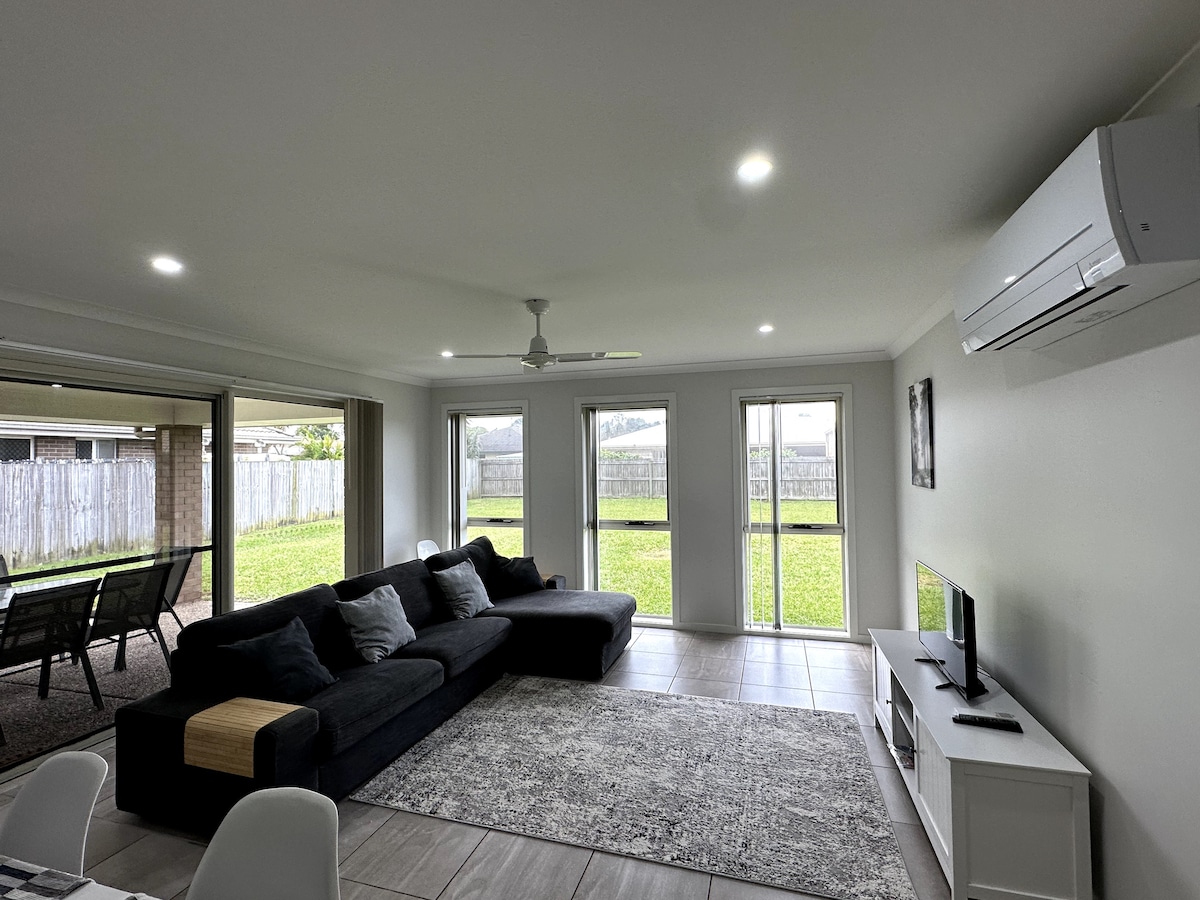 Granny flat with private entrance and with full kitchen facilities and split system aircon. House was only built 7 years ago, and granny flat installed 18 months ago, so everything is near new. You'd have the full granny flat to yourselves, and the interior does not overlap with the main residence. In close proximity to the Sandstone Point Hotel. Can arrange space for a caravan or boat should you decide turn up with one.