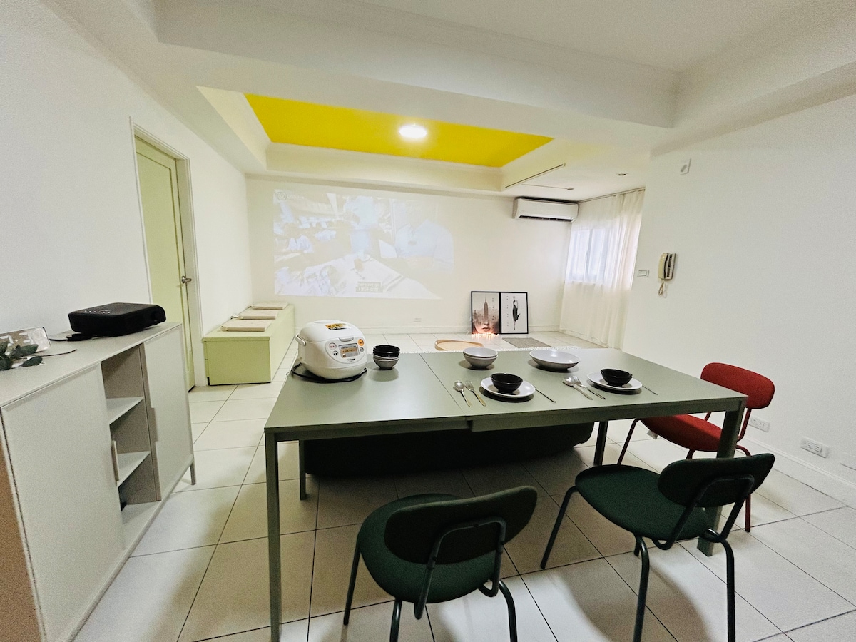 Perfeito para famílias até 6 pessoas. Dentro de 2 a 5 minutos a pé, de fácil acesso à estação Jingmei MRT (Linha Verde G05), paragens de autocarro públicas, supermercados, lojas de departamento, restaurantes, mercado noturno e teste de natureza Immortals Rock. Brilhante nos quartos e muito silencioso à noite.