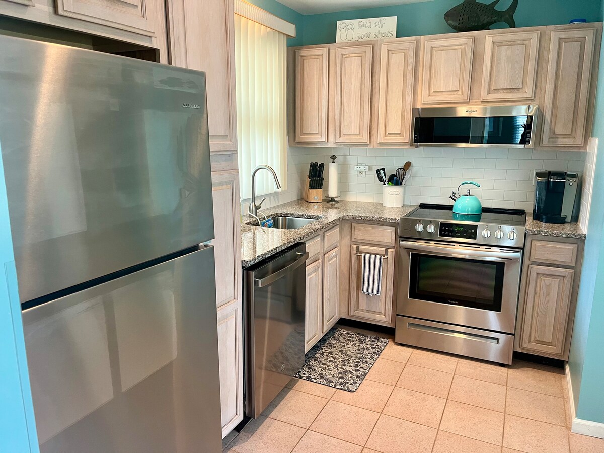 Fuja para este encantador apartamento económico na Ilha de Cape May. Relaxe num quarto luminoso e bem equipado com uma cama queen e desfrute do seu espaço de estar com um sofá de couro e uma televisão de ecrã plano. Com dois alpendres e uma grelha ao ar livre, é ótimo para relaxar depois de um dia na praia. Etiquetas de praia, cadeiras e bicicletas incluídas. Convenientemente localizado a apenas 1,5 milhas da praia, tudo o que precisa para uma escapadela perfeita está ao seu alcance!