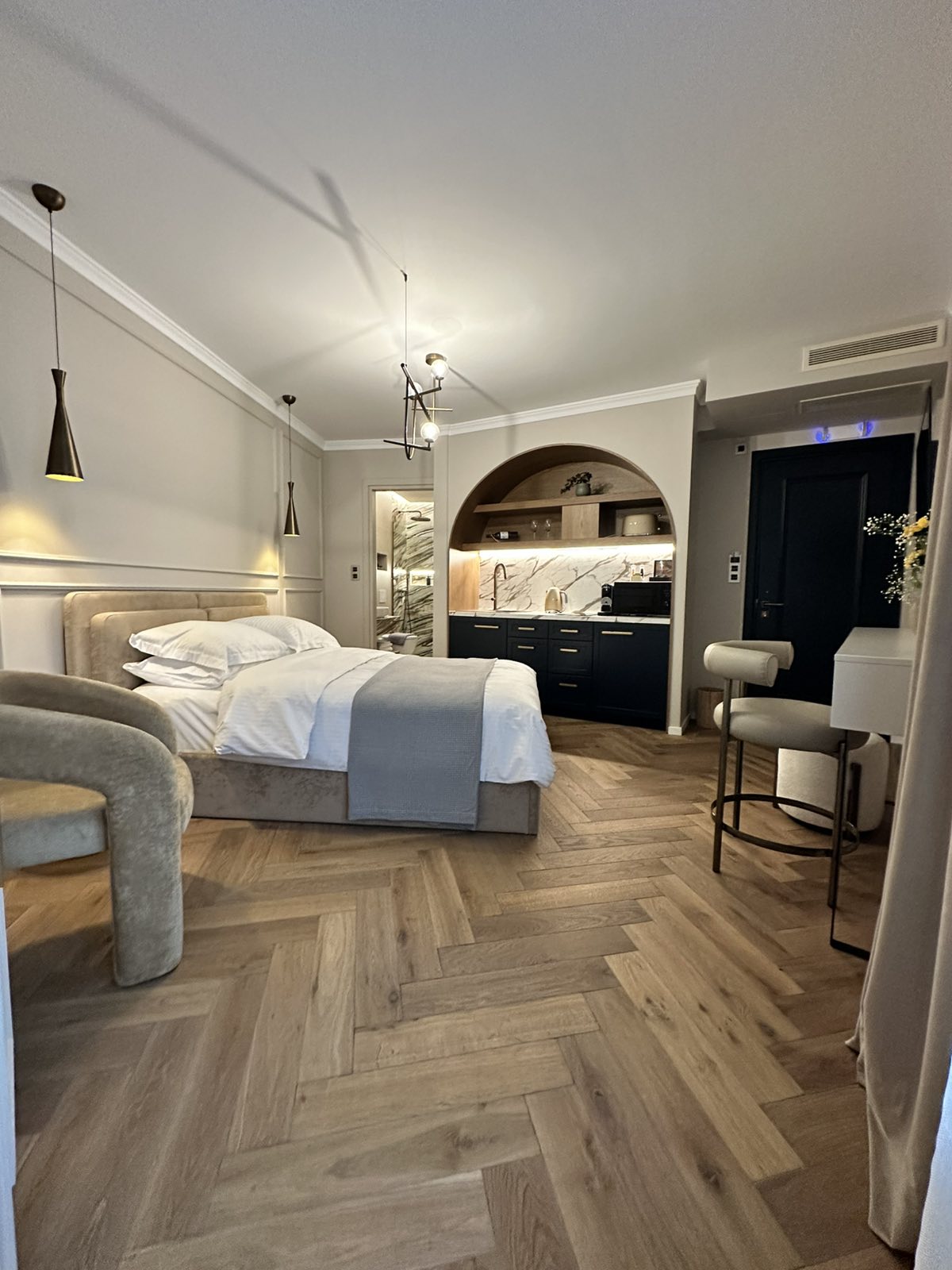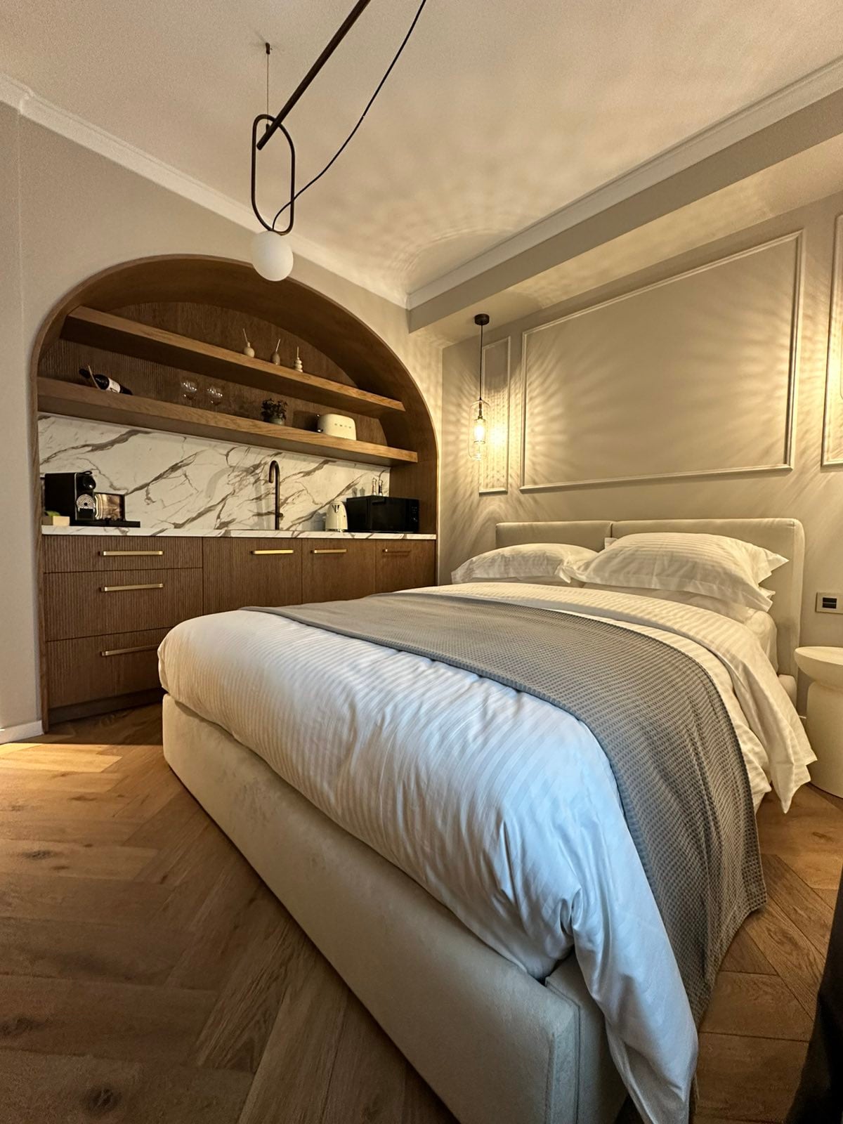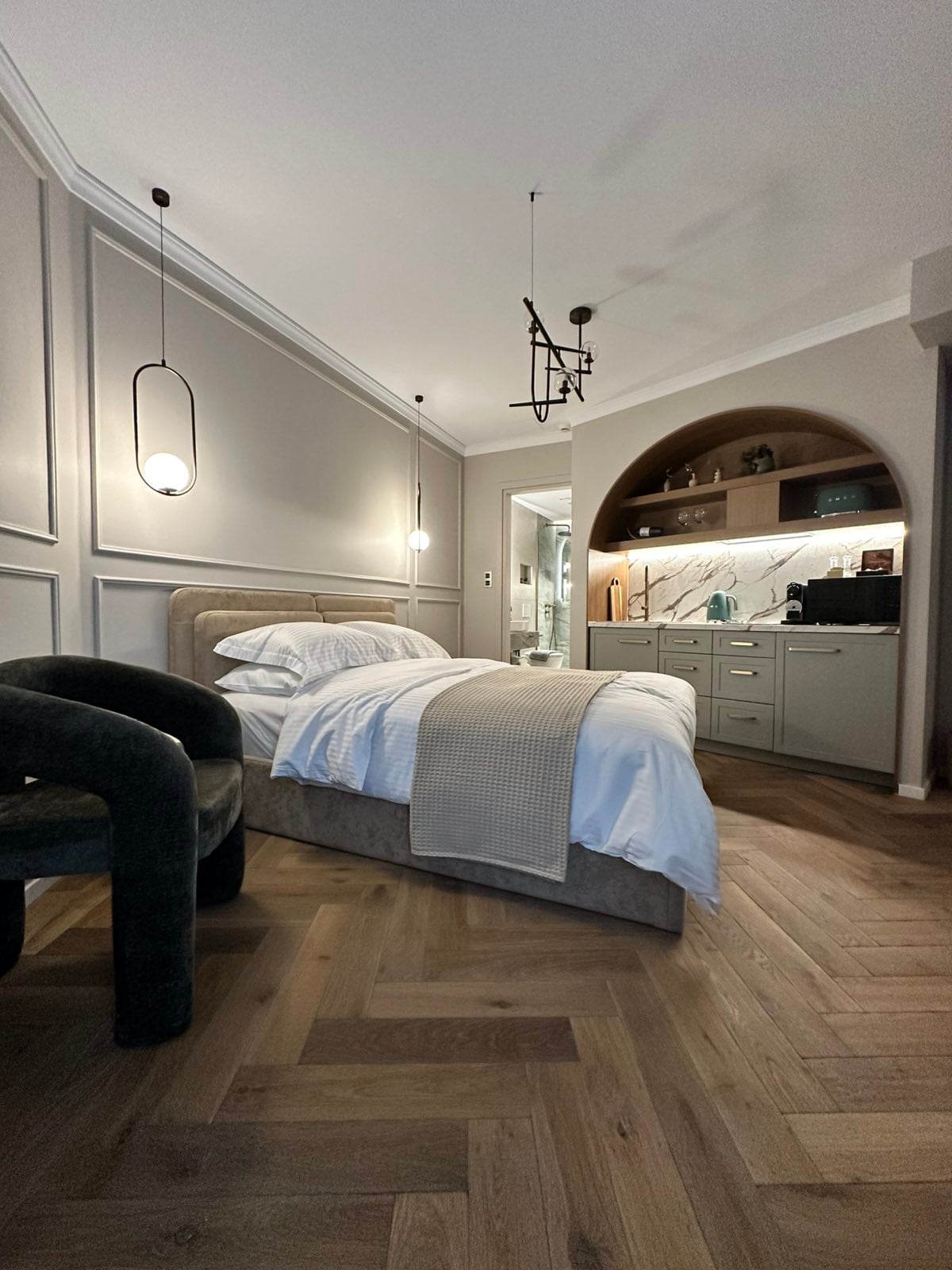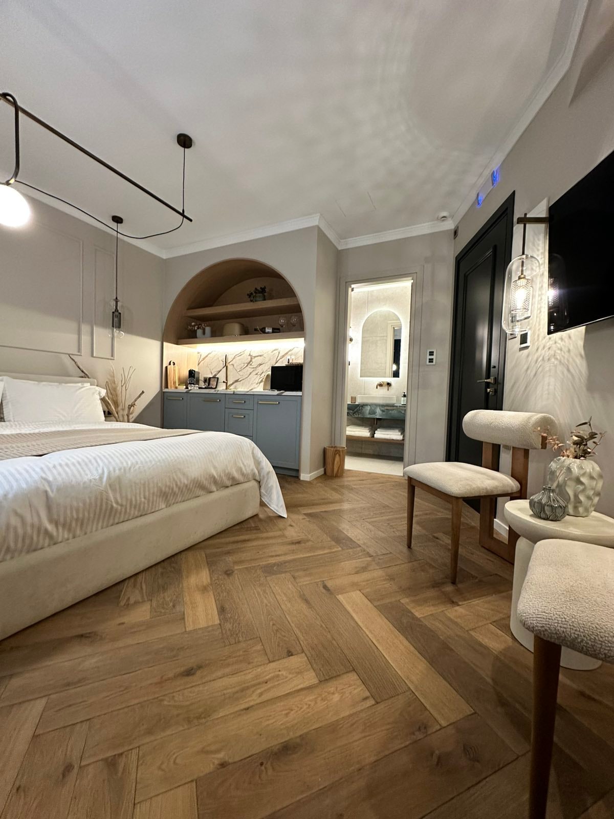 Η Σουίτα HLIOTROPIO είναι ένας χώρος που συνδυάζει την ιστορική κληρονομιά της Φλώρινας με την μοντέρνα πολυτέλεια. Κάθε γωνιά του αντανακλά την έμπνευση των παλιών γλυπτών, ενώ η τοποθεσία δίπλα στο ποτάμι και με θέα το βουνό δημιουργεί ένα καταφύγιο ηρεμίας και έμπνευσης.