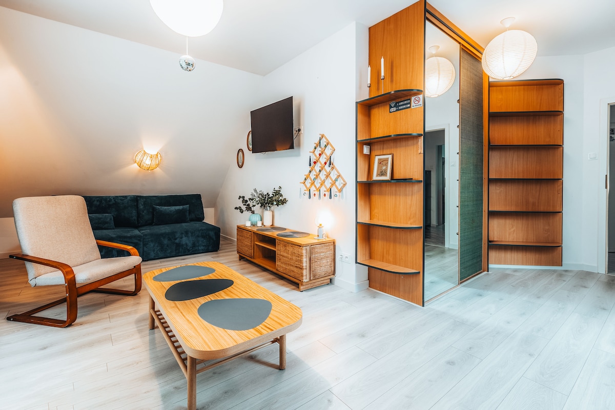 Belo apartamento estúdio localizado no 2º andar num complexo residencial histórico na Rua Żubrów, perto do centro de Szczecin. A uma distância de 500 m fica o centro comercial Galaxy. Esta é uma excelente localização para quem quiser desfrutar de um lugar tranquilo para relaxar. A infraestrutura comercial e de serviços desenvolvida irá satisfazer plenamente todas as necessidades diárias dos hóspedes. Por favor, peça uma oferta para estadias mais longas.