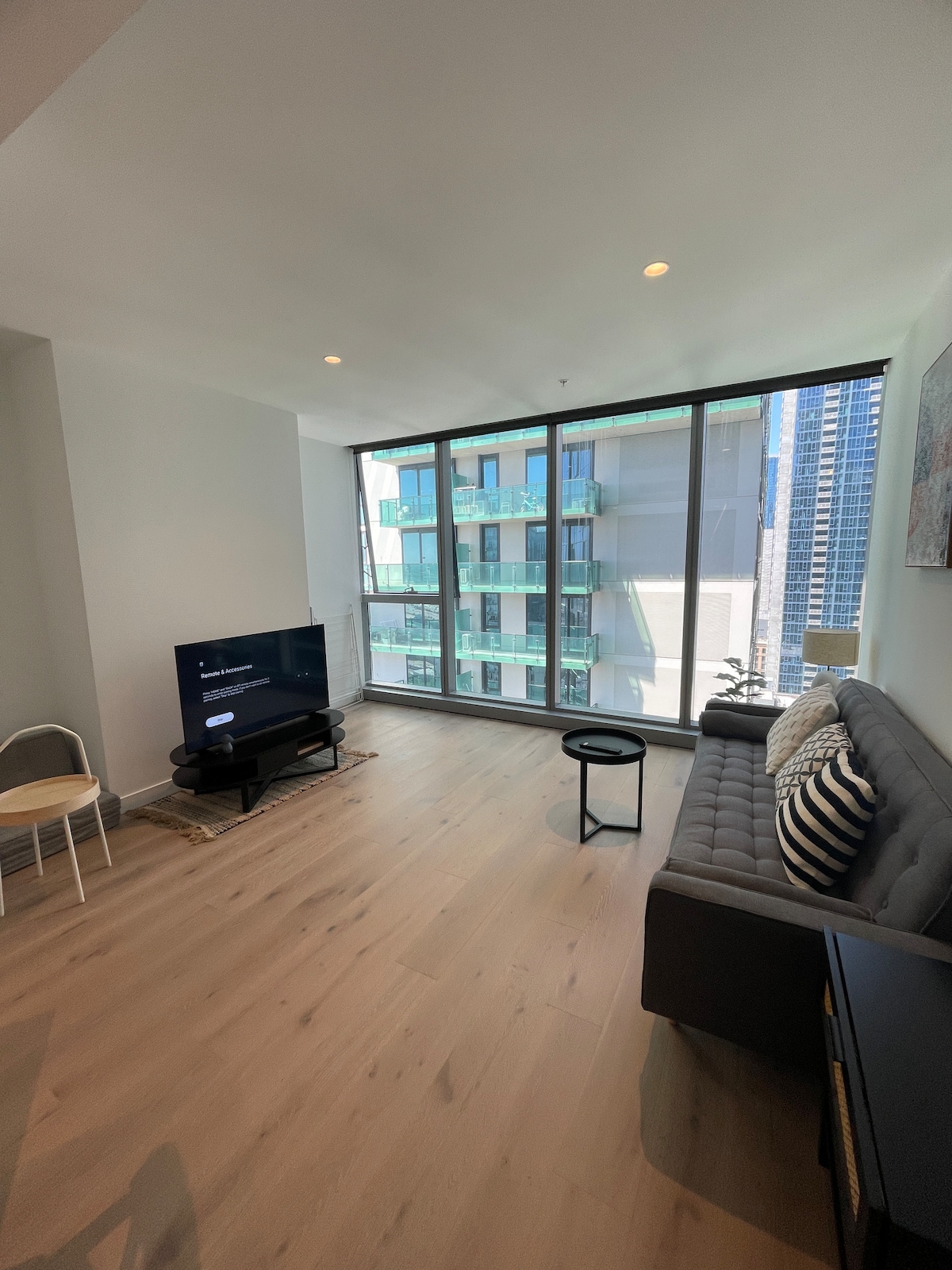 Um espaço tranquilo para chamar de lar durante sua estadia em Melbourne, seu próprio apartamento de 2 quartos e 2 banheiros (64 m² internos + 6 m² de varanda). Projetado com santuário em mente simples, moderno e minimalista. Aprecie as vistas incríveis do horizonte da cidade. Este é um espaço para toda a família. Localizado ao lado da estação Southern Cross e do terminal de ônibus Sky Bus. Situado na zona de bonde gratuito - tudo o que Melbourne tem a oferecer está ao seu alcance - perto de restaurantes baratos, restaurantes elegantes e cafés modernos.
