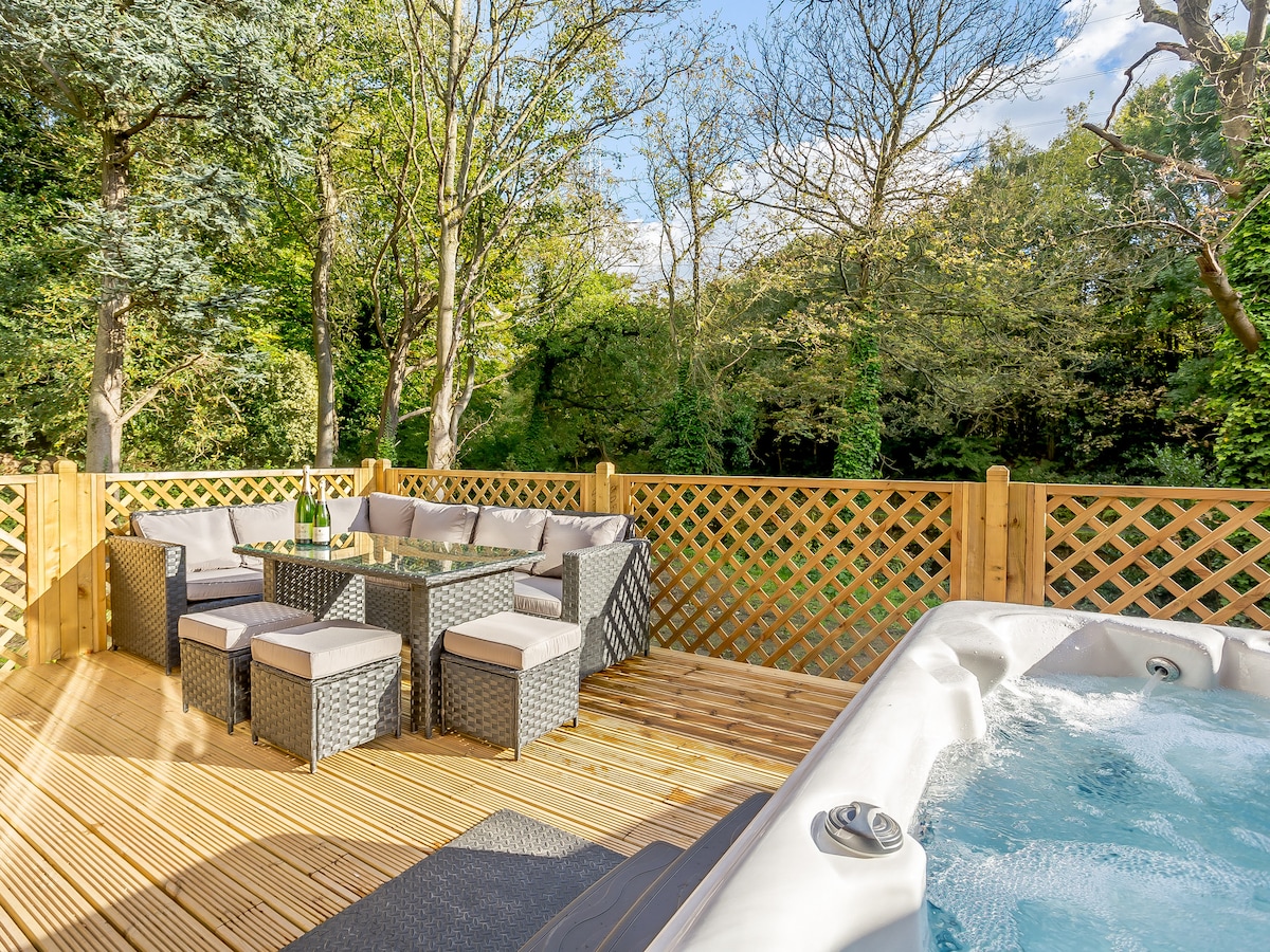 A cabana aquecida da árvore está situada dentro de uma pequena floresta isolada em um caminho íngreme. Cedro forrado, isolado e carvalho revestido, ele se inclina sobre um lago de moinho remoto. Acorde em um paraíso tranquilo compartilhado apenas com animais selvagens tímidos, incluindo veados, lebres, texugos e uma variedade de pássaros. Na cabana há uma cama king-size plus, mesa e cadeiras, área de cozinha com placa de indução, forno de micro-ondas e torradeira. Sua própria cabana de árvore menor, a algumas árvores de distância, abriga um vaso sanitário com descarga e pia com água de nascente.