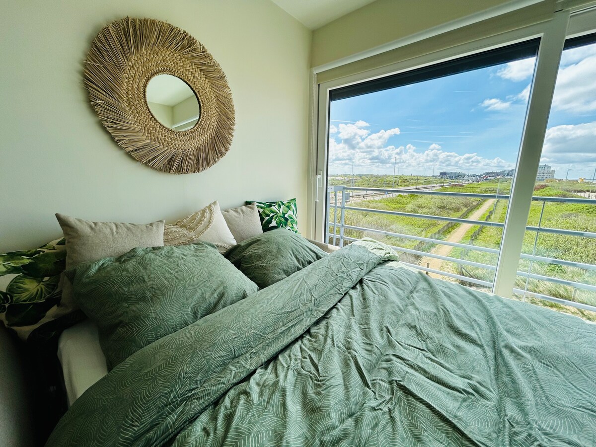 Vista para o mar • 4º andar • Garagem gratuita✨ Fique num verdadeiro refúgio de paz! Conforto absoluto ✔ Grande sala de estar com vista panorâmica para o mar e cozinha totalmente equipada ✔ Quartos relaxantes (sem lençóis ou capas de edredão) Casa de ✔ banho moderna (sem toalhas fornecidas) ✔ Wi-Fi + SmartTV ✔ Berço e cadeira de bebé 👶 ✔ Garagem privada. ✔ Elevador Nas proximidades: restaurantes, lojas e ciclovias 🚲 Reserve em breve e deixe-se embalar pelas ondas!🌅