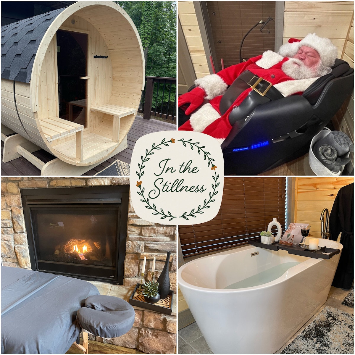 Situada em 1,25 acres de natureza serena, a nossa cabana acolhedora oferece um refúgio tranquilo que convida os hóspedes a descontrair, desfrutar de café no alpendre, relaxar na sauna, derreter-se na cadeira de massagem ou mergulhar na banheira de hidromassagem. Quer a união seja assar s'mores junto à fogueira, jogar jogos de tabuleiro ou desfrutar de um jogo amigável de cornhole, esta cabana é um santuário para o descanso físico, emocional e espiritual, perfeito para se reconectar e escapar da vida diária. Convidamo-lo a "Aquietar-se". Salmo 46:10