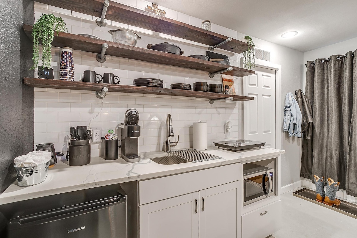 Esta pequena e elegante casa fica a 5-7 minutos de carro do centro de Ft. Vale a pena e oferece muitos confortos aos hóspedes. Desfrute de tudo o que Cowtown tem para oferecer com estacionamento gratuito, uma fogueira e acessórios complementares. Esta casa acolhedora, que aceita cães, tem uma televisão com Wi-Fi, está vedada no quintal partilhado, tem um chuveiro, jogos de tabuleiro e uma máquina de lavar e secar roupa para que se sinta em casa. O bairro é animado, barulhento e colorido, incluindo moradores locais a cavalo!