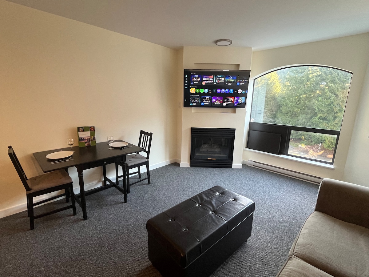 Experimente nosso apartamento como seu refúgio de inverno perfeito em Whistler! Desfrute de acesso imediato a elevadores de esqui, trilhas de raquetes de neve, bares e jantares après-ski. Depois de um dia nas pistas de esqui, relaxe em nosso retiro aconchegante e aqueça-se com chocolate quente junto à lareira ou mergulhe na banheira de hidromassagem. A vila próxima oferece inúmeros restaurantes e festividades de inverno, enquanto nossa estante está abastecida com jogos de tabuleiro e romances para noites de neve!