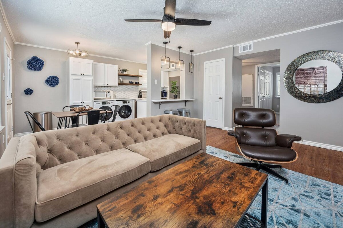 Este lindo apartamento estúdio atualizado oferece conforto e estilo... ideal para: ➡️ Casais à procura de uma escapadela acolhedora ➡️ Aggies a visitar Aggieland ➡️ Visitantes da Exposição do Condado de Brazos ➡️ Melhores amigas numa viagem de raparigas ➡️ Viajantes que precisam de um espaço confortável para trabalhar e descansar O estúdio tem uma enorme cabine de duche, uma máquina de ruído branco para quem tem sono leve, um colchão novo, roupa de cama premium, louça de qualidade, canecas de café grandes, copos de vinho verdadeiros, café de cortesia, lanches e muito mais.