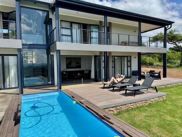 Load shedding equipped - inverter and battery system. This is a very comfortable, centrally-located family home with an open-plan living space leading out to a large deck, which overlooks a sparkling pool and treetops of the adjacent green belt. The house is best suited for up to 4 adults and their children (maximum 6 guests in total). Because the unit only has 2 ground floor bathrooms, we will not be able to accept booking requests for 6 adults. Strictly no noise and no parties allowed.