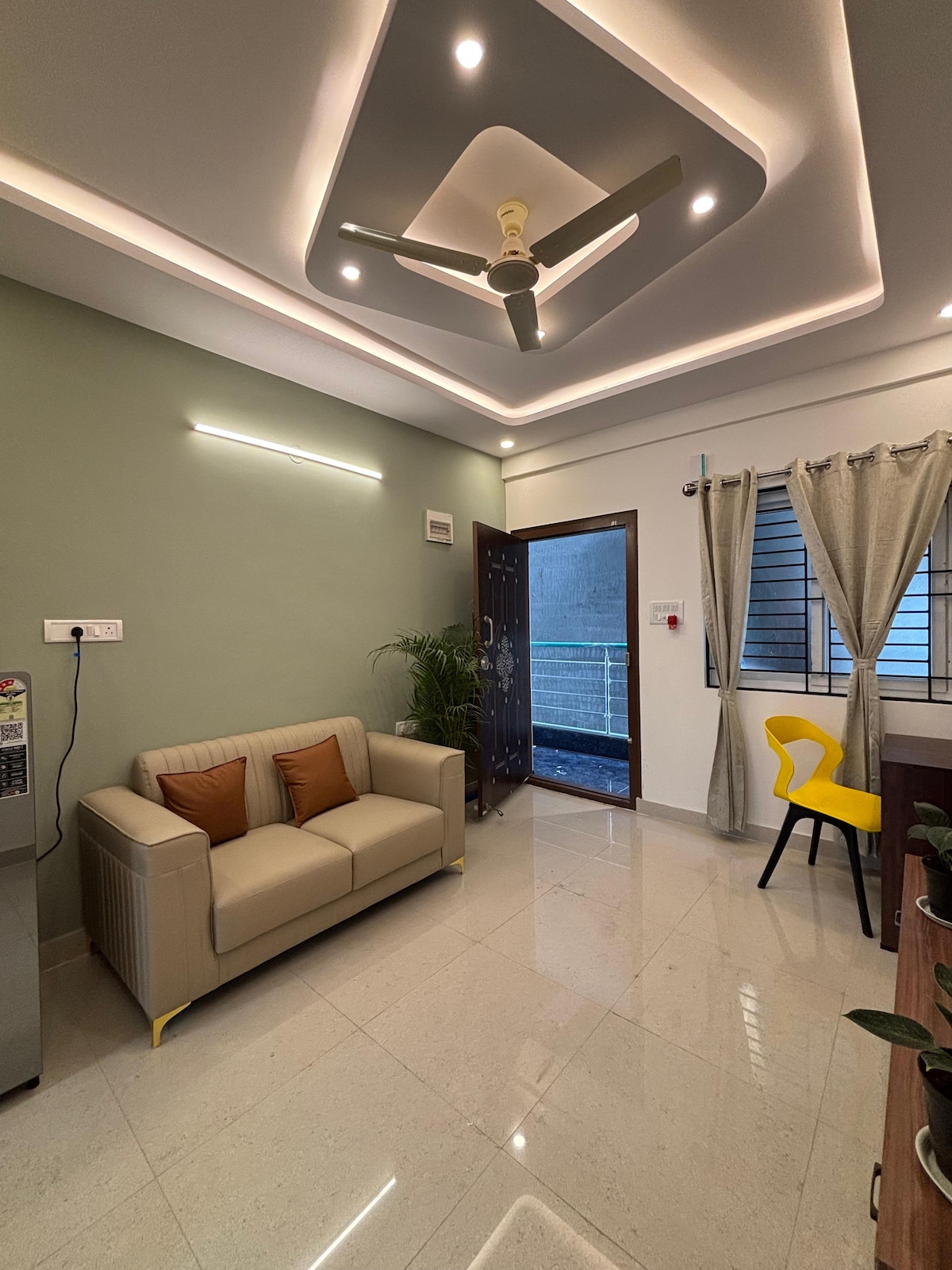 Nestled in the heart of Whitefield, surrounded by lush greenery, our premium 1 BHK apartments are meticulously designed to offer high-quality stay experience and extreme comfort. We have used wakefit 10" memory foam mattresses in bed room and amoeba sofa cum bed in the hall, to offer ultimate sleep quality and back support. We designed our kitchen spaces with modern kitchen utensils - including mini bar set. Other amenities include 100 Mbps WIFI, proximity to the Metro station, and IT hubs.