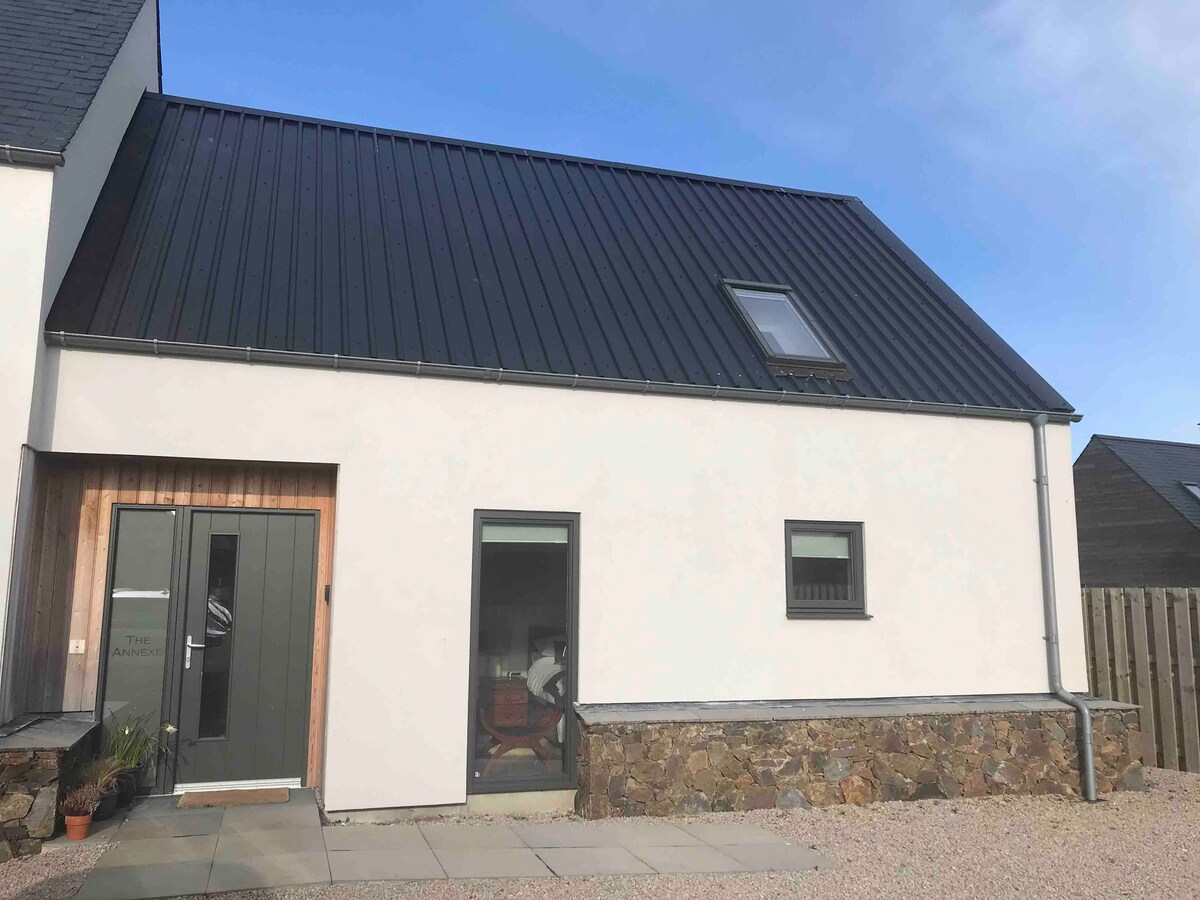 Experience the peace and tranquility of country living. This modern, unique one bedroom, two floor apartment forms a wing of a 150 year old converted steading. The ground floor features two private entrances, a downstairs shower room and spacious open plan kitchen-lounge. 50 inch smart tv and fully equipped kitchen. Upstairs features a large bedroom with independent storage room, decadent freestanding bath, King- sized bed with new mattress and storage drawers.