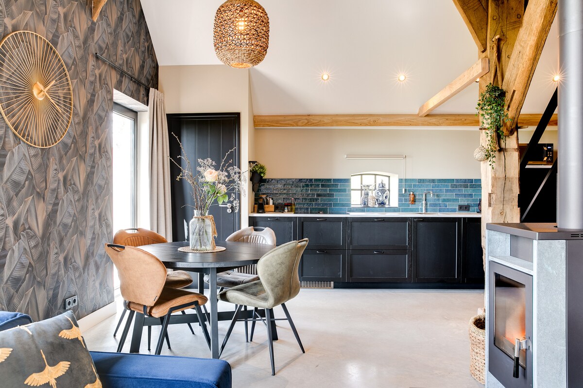 Com os braços abertos, recebemos você em nossa encantadora acomodação. A decoração é caracterizada pelo aconchego e aconchego caseiro. No jardim fechado há uma área de bem-estar privada com jacuzzi e uma sauna combinada (infravermelha e finlandesa) que é ilimitada. Aqui em Drenthe, onde o tempo parece desacelerar, criamos um retiro onde você pode escapar da agitação da vida cotidiana e desfrutar plenamente e relaxar.