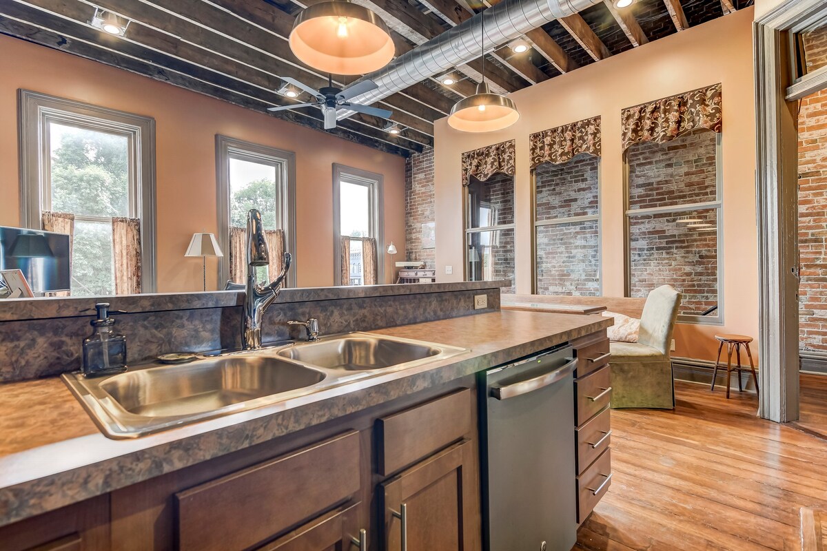 Um apartamento loft de segundo andar lindamente renovado localizado na praça da histórica Petersburg. O espaço oferece uma abundância de luz natural com grandes janelas com vista para o histórico Tribunal do Condado de Menard de 1896 e praça da cidade. O loft apresenta uma mistura de personalidade encantadora e comodidades modernas.