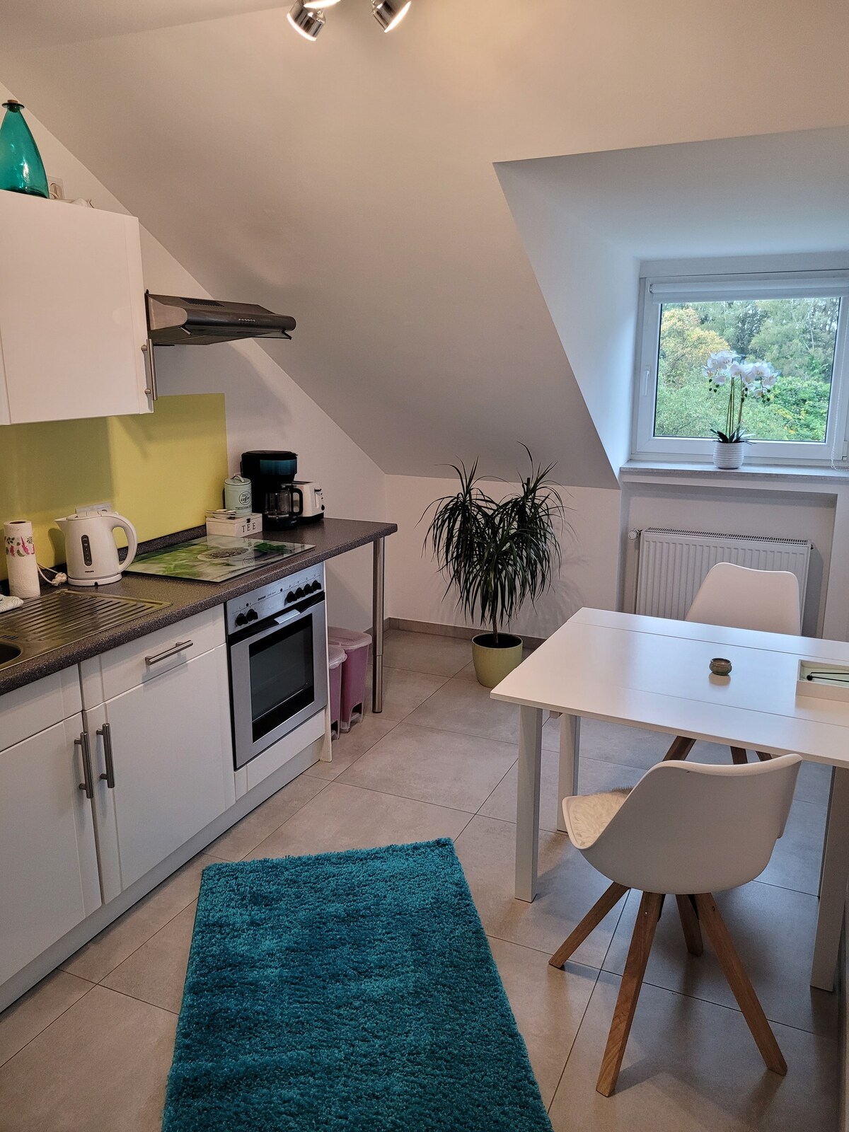 O apartamento no sótão (aprox. 40 m²) com 2 quartos extra foi completamente renovado este ano. As comodidades do quarto incluem 2x cama de casal, 1x cama individual, frigorífico, chaleira elétrica, micro-ondas, louça, Wi-Fi e ar condicionado. A cozinha separada NÃO É FORNECIDA. A casa de banho fica um andar de baixo e tem uma banheira, chuveiro, sanita e secador de cabelo. Estacionamento disponível em frente à casa. Por causa da localização ideal para visitantes da Feira de Düsseldorf, viajantes e famílias