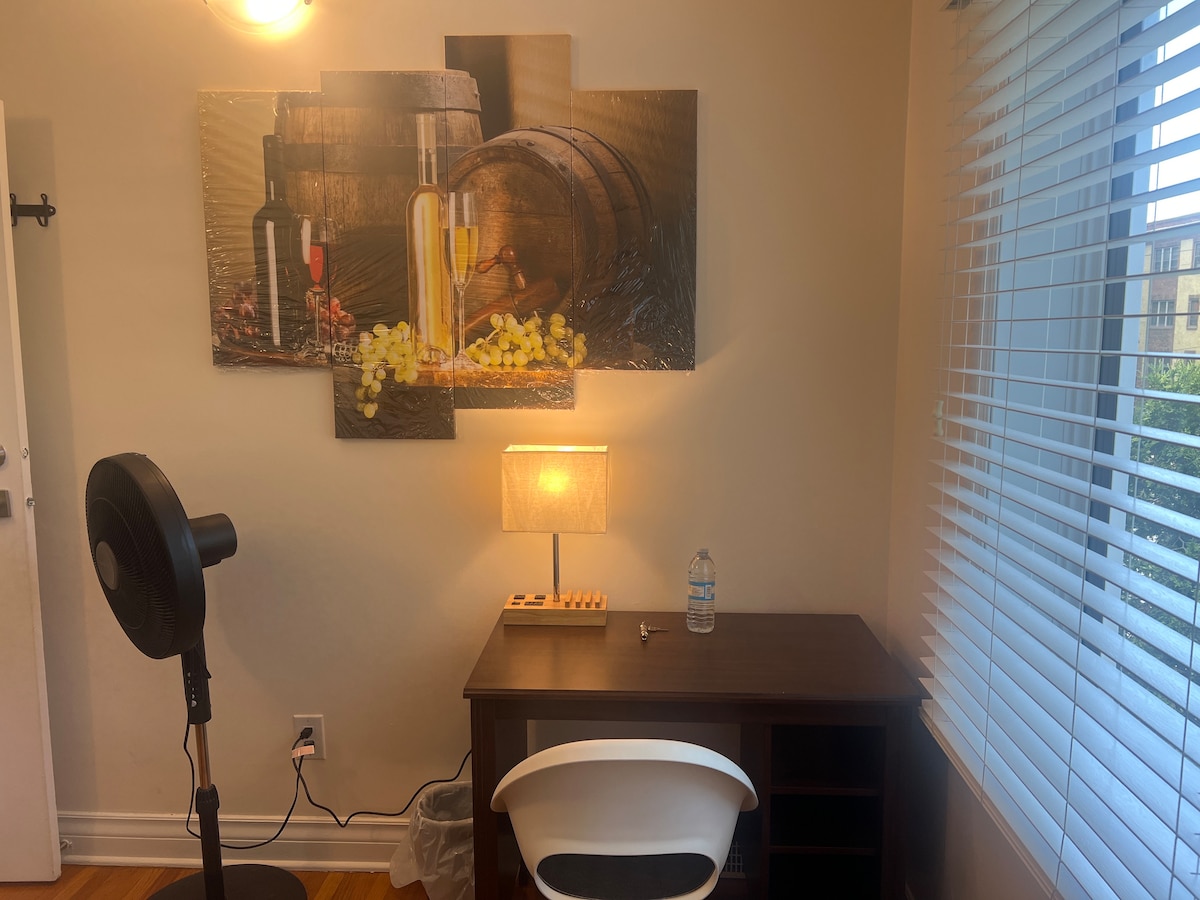 Procurando um lugar de fuga, privado, silencioso e tranquilo! Apartamento de 1 quarto no porão com um lado de cozinha que vem com uma geladeira, micro-ondas, chaleira, cafeteira, talheres, bem como utensílios básicos de servir para seu uso. O quarto está equipado com uma mesa de leitura ajustável e cadeira, uma esteira para exercícios e uma cama queen que é quente e aconchegante para um sono perfeito. Toalhas limpas são fornecidas. Está localizado em um ambiente sereno da cidade com sistema de ônibus de trânsito funcional.
