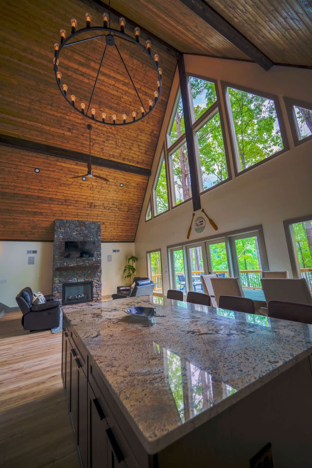 Soak up the sun and unwind in pure luxury on beautiful Smith Lake at the edge of Bankhead National Forest. Make unforgettable family memories on the two-story dock and bar, two full-length decks, private hot tub pagoda, star-ceilinged theater, arcade room of teenage dreams or cooking together in the modern chef’s kitchen. Soaring wood-paneled ceilings, gorgeous natural stone accents and endless thoughtful details blend seamlessly with the stunning nature of one of the country’s cleanest lakes.