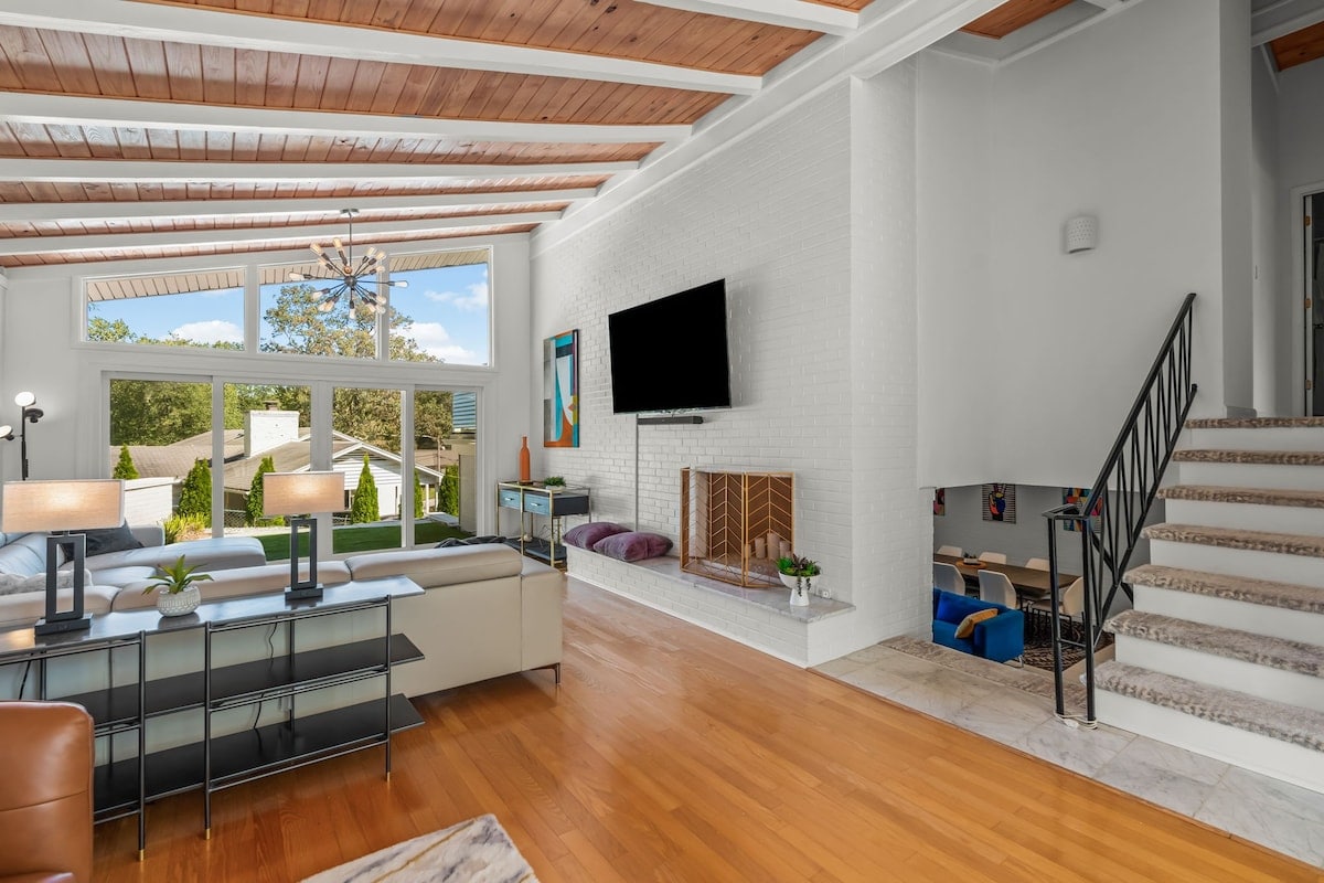 Encantadora quinta moderna com 4 camas e 3 casas de banho a poucos minutos da Universidade Wake Forest. Perfeita para grupos, esta casa tem uma cozinha de chef, lareira de pedra e um espaço de trabalho dedicado. Duas suítes separadas oferecem privacidade adicional. Desfrute de uma estadia elegante e confortável num bairro tranquilo perto de todas as atrações de Winston-Salem.