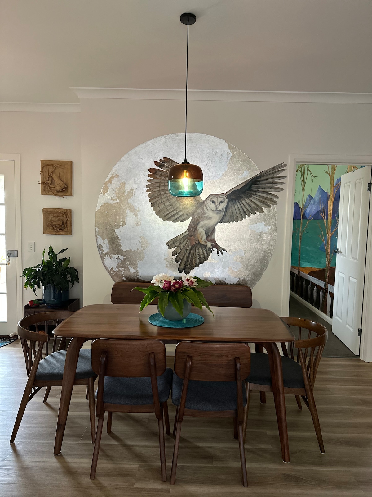 Este é um espaço para relaxar e descontrair (grande deck com churrasqueira, quintal seguro (para cão pequeno). Desfrute do pequeno-almoço no deck rodeado por árvores com vista para a baía de Bancroft. Acorde renovado ao som dos pássaros, caminhe até à aldeia. Depois das aventuras do seu dia, acenda a chaminé e desfrute de uma bebida tranquila no pátio ou aconchegue-se junto à lareira elétrica no salão. Acima de tudo, relaxe na bela aldeia de Metung.