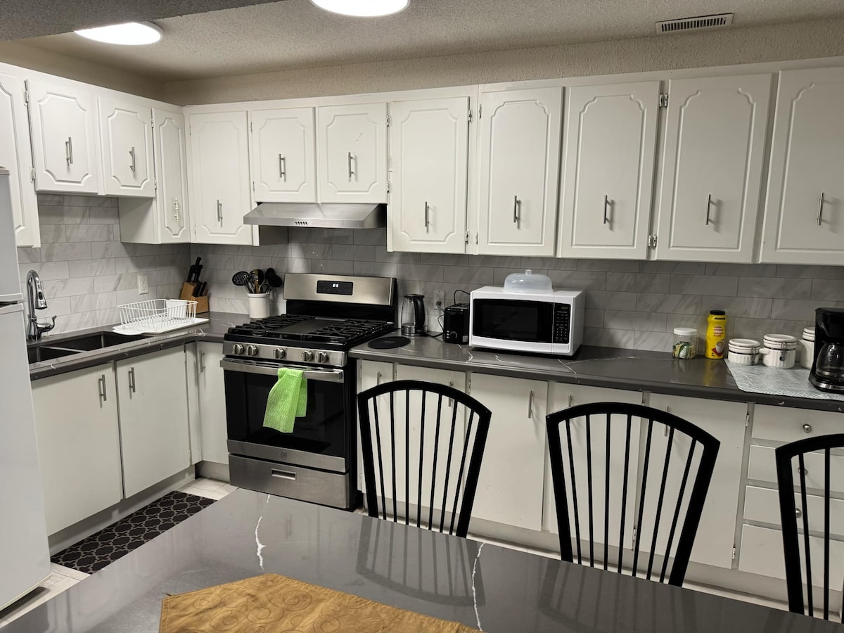 Apartamento PRIVADO no porão com entrada separada. Espaço de 420 pés quadrados. Cama Queen Size. Chuveiro de grandes dimensões com efeito de chuva. Micro-ondas, duas geladeiras pequenas, cafeteira/chaleira. Observação: não é uma cozinha completa. Mesa de jantar/trabalho com bancos. Wi-fi de alta velocidade. Sala de estar com sofá reclinável Lazy Boy e TV Smart de 50”. Mais de 1000 canais de TV ao vivo e Netflix. Pátio privado no quintal com mesa. Entrada privativa (2 carros). 1 minuto de carro até a rodovia 401. 15 minutos a pé da estação de trem Ajax Go.