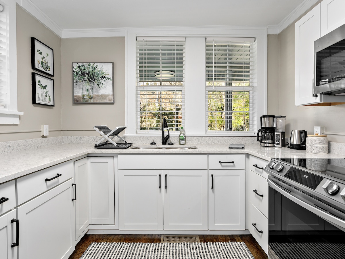O refúgio Atomic é um estúdio de meados do século, de conceito aberto e recém-mobiliado. O apto está localizado no térreo com uma entrada privativa, um pátio e estacionamento na rua. A espaçosa área de estar tem uma TV inteligente, uma cozinha acoplada com uma mini geladeira, micro-ondas, um Keurig e um refrigerador de água. A área de dormir inclui uma cama king size e outra TV. Convenientemente localizado no centro de Asheville, o Atomic Getaway é a base ideal para explorar todos os destinos que Asheville tem a oferecer.