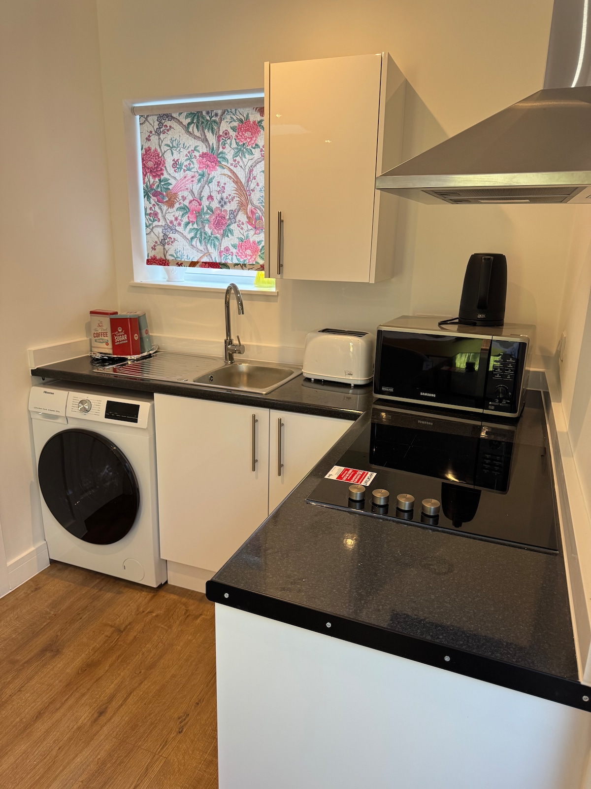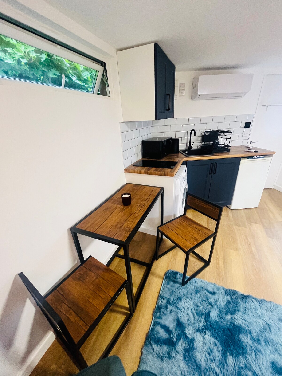 Um lindo apartamento independente na parte inferior do nosso jardim isolado por árvores. o apartamento tem uma área externa agradável com mesa e cadeiras no pátio. Dentro há uma grande cozinha em plano aberto, jantar, sala com sofá-cama e uma cozinha bem equipada com forno duplo, geladeira congelador, máquina de lavar louça, máquina de lavar roupa micro-ondas, torradeira, chaleira e muito mais. Há uma grande TV smart e Wi-Fi, mesa de jantar. Quarto com cama king size e guarda-roupa embutido. Banheiro com box.